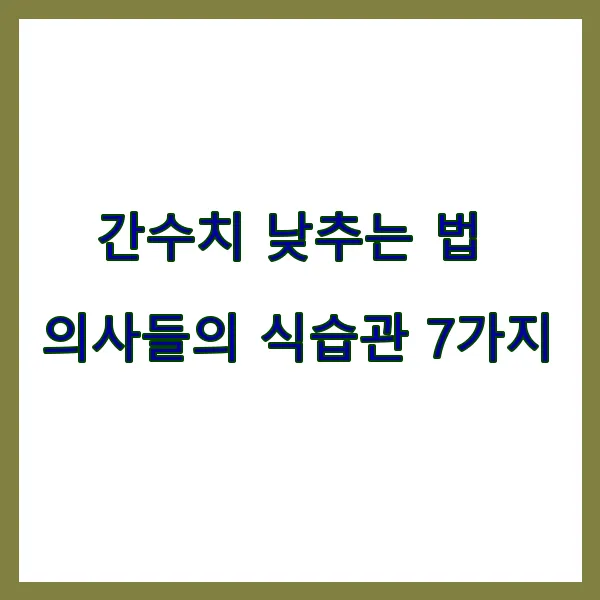 간수치 낮추는 법을 알고 싶다면? 의사들이 직접 실천 중인 간 건강 관리 식습관 7가지를 소개합니다. 실생활에 바로 적용 가능한 정보만 담았습니다.