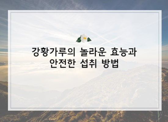 강황가루는 다양한 건강상의 이점을 제공하지만, 적절한 섭취량을 지키는 것이 중요합니다. 과다 섭취는 부작용을 초래할 수 있으므로, 하루 권장 섭취량을 준수하는 것이 좋습니다. 강황가루를 통해 건강한 생활을 유지하시길 바랍니다.
