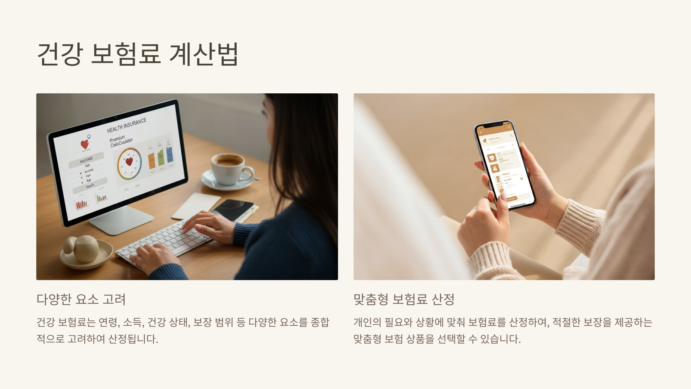 건강 보험료 산정은 연령, 소득, 건강 상태, 보장 범위 등 다양한 요소를 종합적으로 고려하여 진행됩니다.