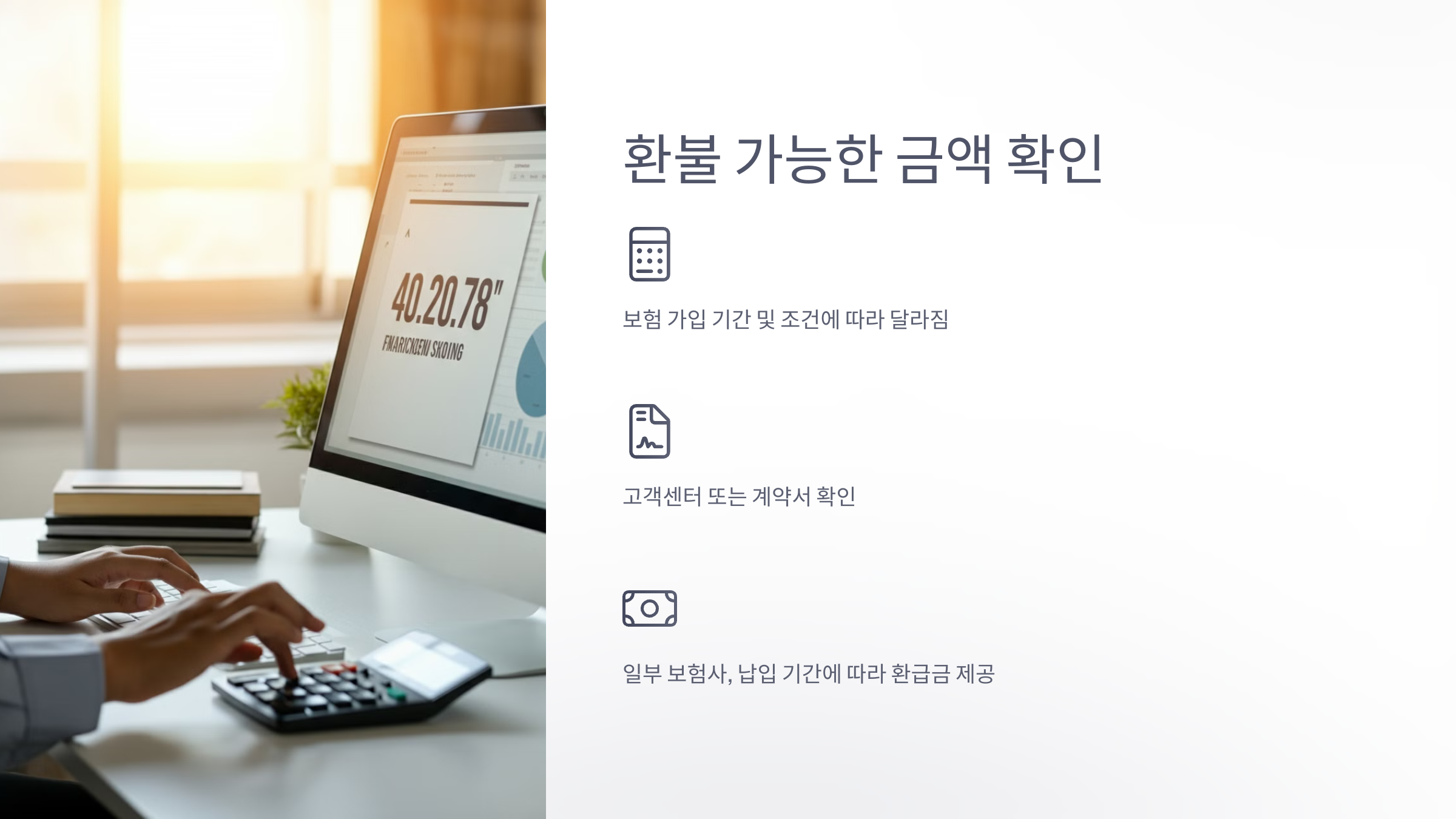 환급금 산정 방식은 보험사마다 상이하므로, 계약서 또는 고객센터를 통해 자신의 계약 조건에 맞는 환급금 산정 방식을 확인해 보는 것이 필요합니다.