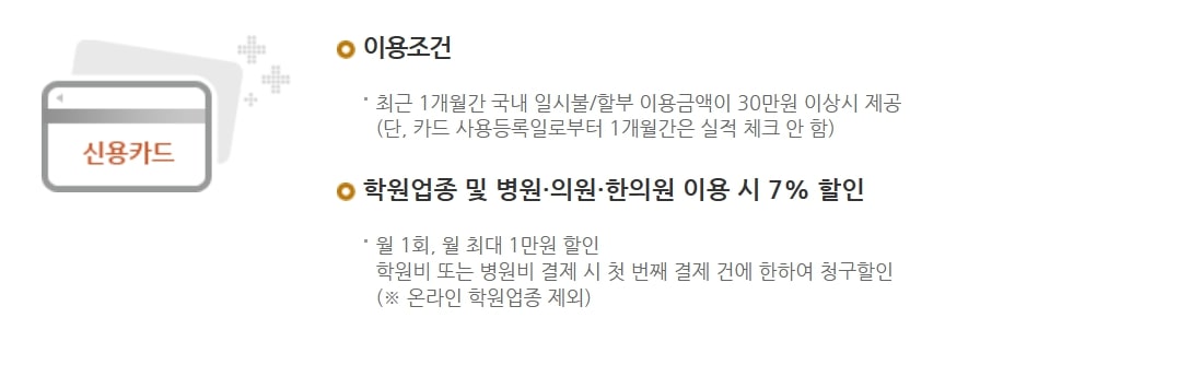 - 학원 및 병원 할인: 학원 및 병원 이용 시 7% 할인