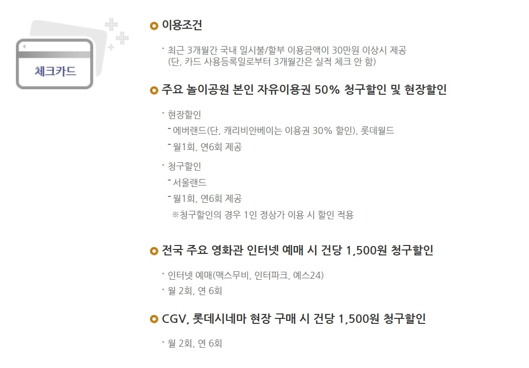 - 놀이공원 할인: 주요 놀이공원에서 현장 할인 제공