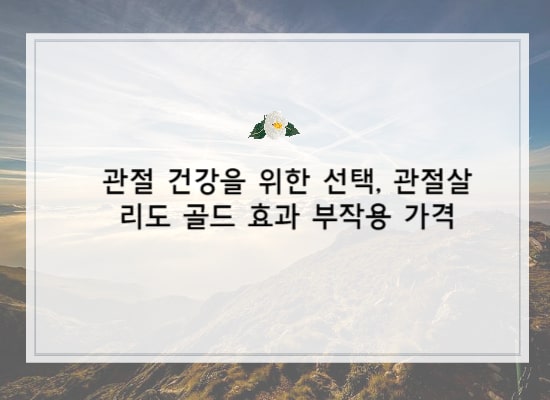 관절 건강을 위한 선택, 관절살리도 골드 효과 부작용 가격