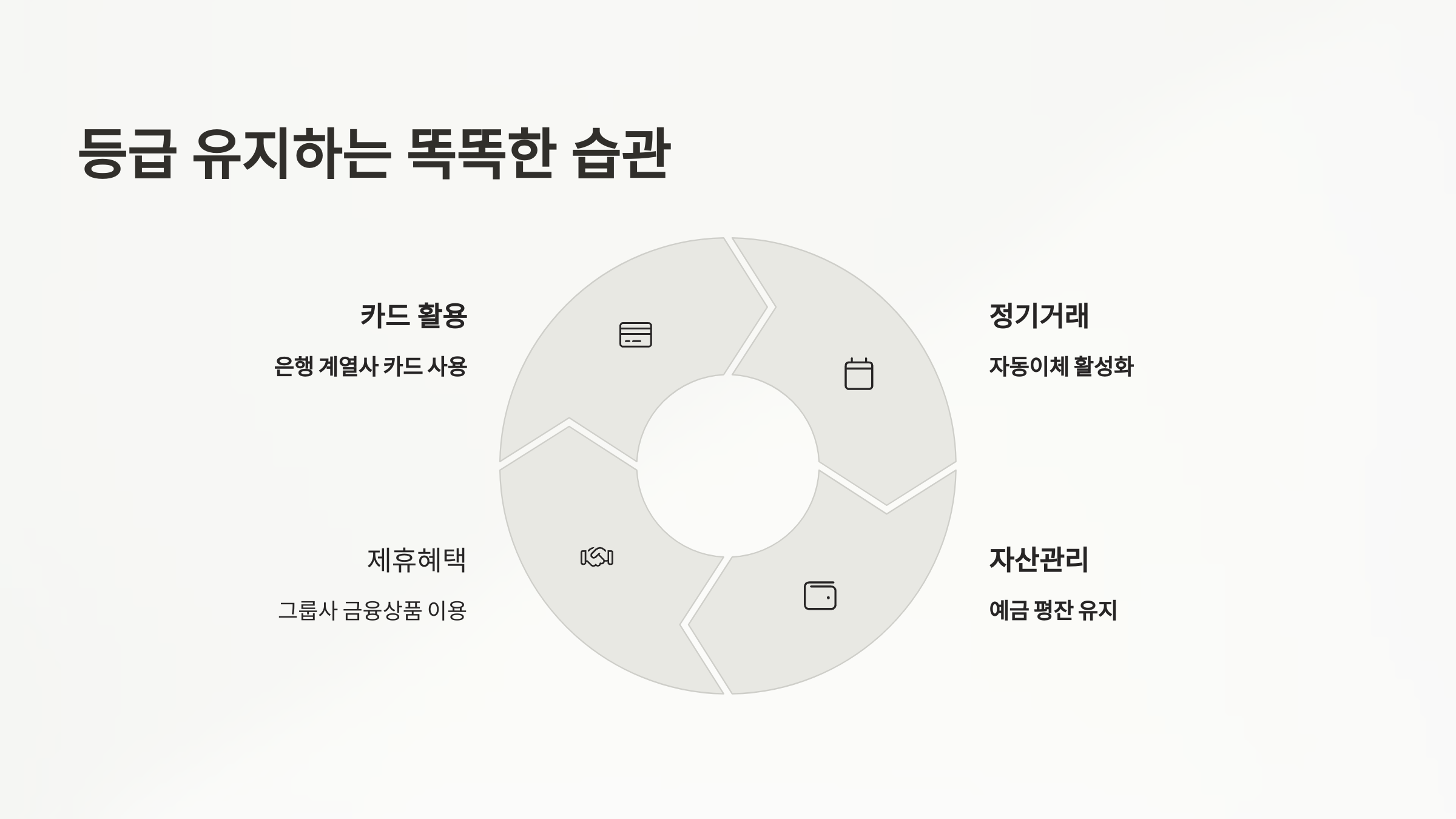 은행 등급은 일상 속에서 실적을 쌓고 유지하는 습관이 중요해요. 그렇게 해야 안정적으로 혜택을 계속 누릴 수 있어요.