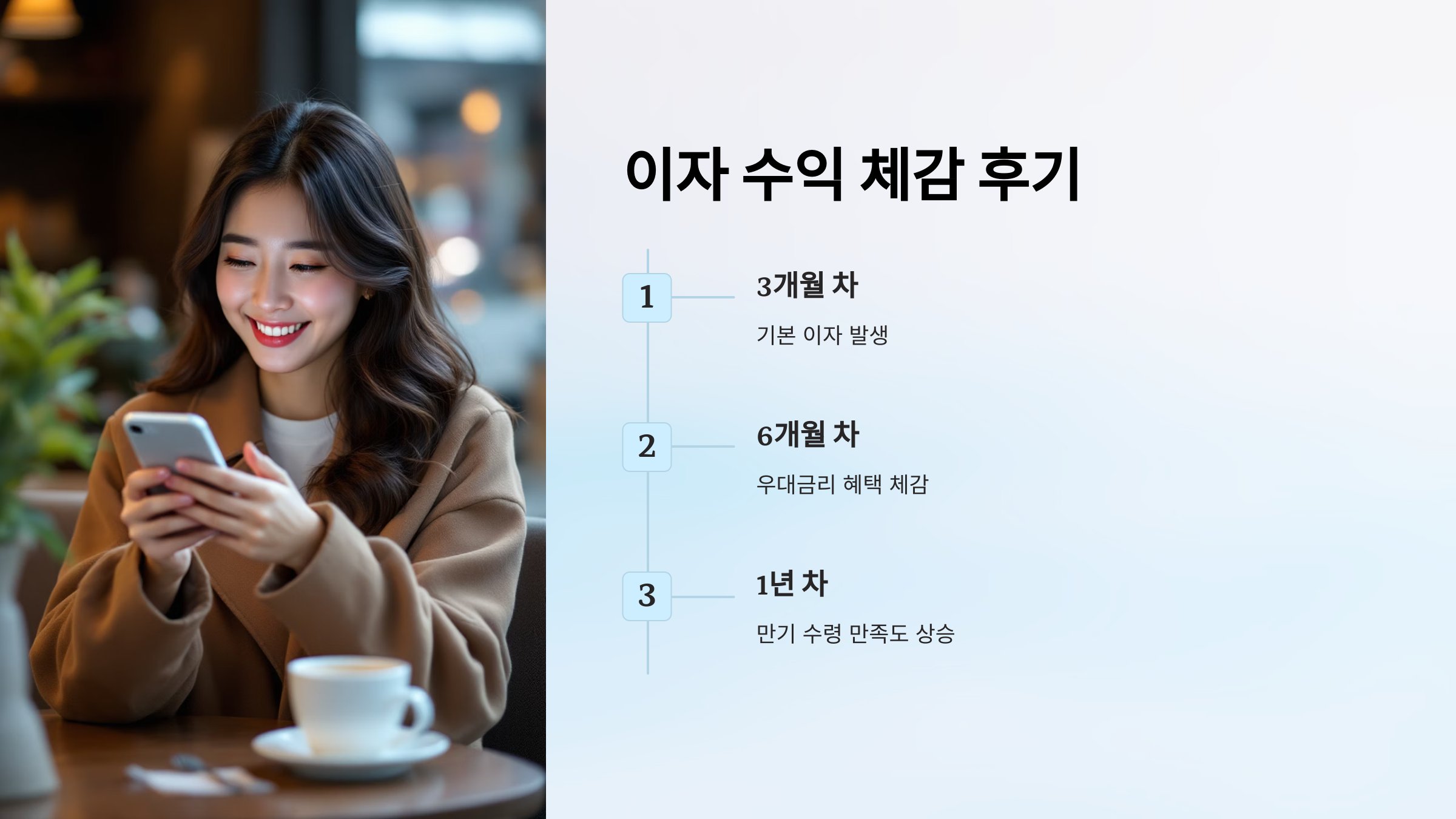 저는 매달 이자 수익을 보며, 작은 수익이지만 꾸준한 금융 습관이 얼마나 중요한지 느끼게 됐어요. 우대금리 하나만 바꿨을 뿐인데 여유 자금이 생겼어요.
