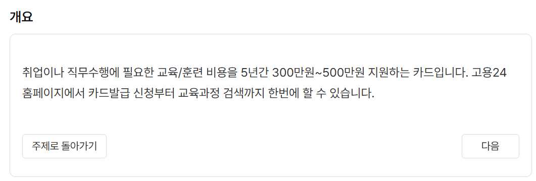 이 카드는 정부에서 훈련비를 지원해주는 카드로, 다양한 교육 프로그램에 참여할 수 있습니다.