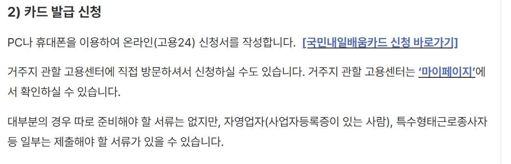 모든 절차가 완료되면, 카드 발급이 진행됩니다. 발급된 카드는 고용센터에서 직접 수령하거나, 등록된 주소로 배송받을 수 있습니다.