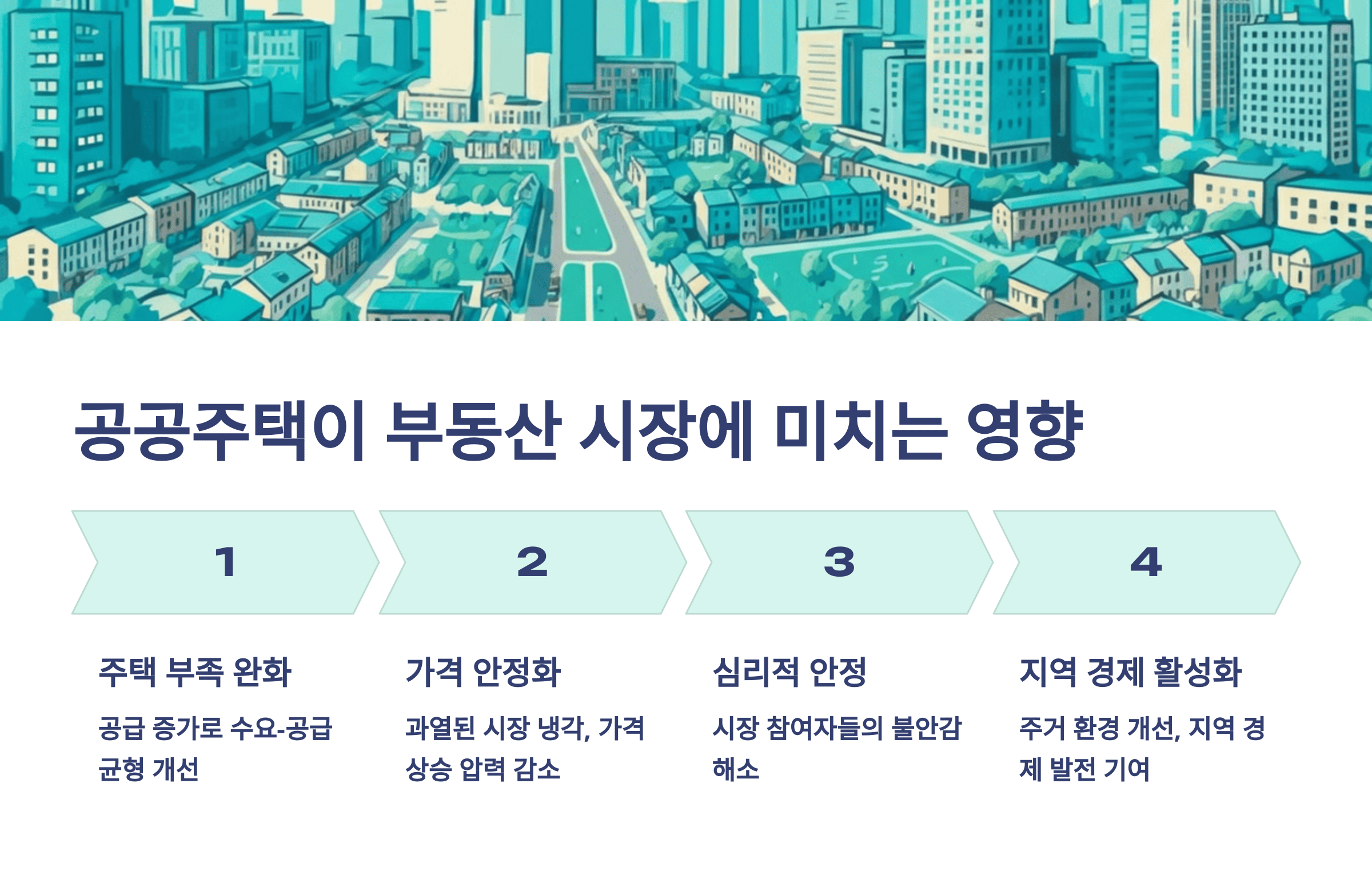 이는 과열된 부동산 시장의 안정화를 도모하는 효과를 냅니다. 주택 가격이 급등하는 상황에서 공공주택 공급은 가격 안정화에 기여할 수 있습니다.