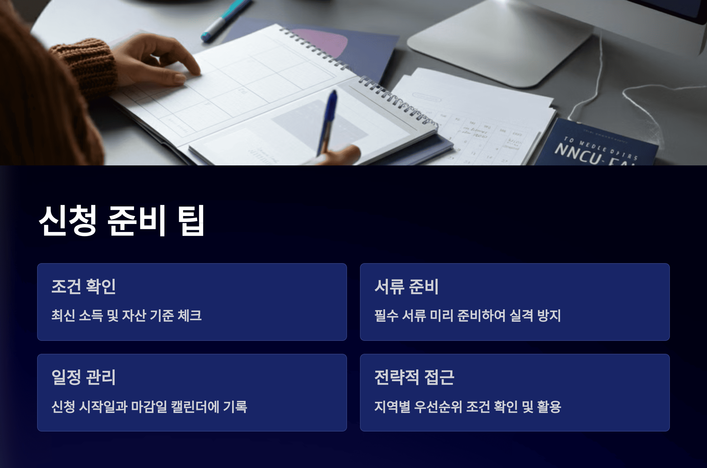 신청 시작일과 마감일을 캘린더에 기록하고 알람을 설정해두세요. 바쁜 일정 속에서 마감일을 놓치는 일이 없도록 사전에 대비하는 것이 중요합니다. - 우선순위 조건 활용