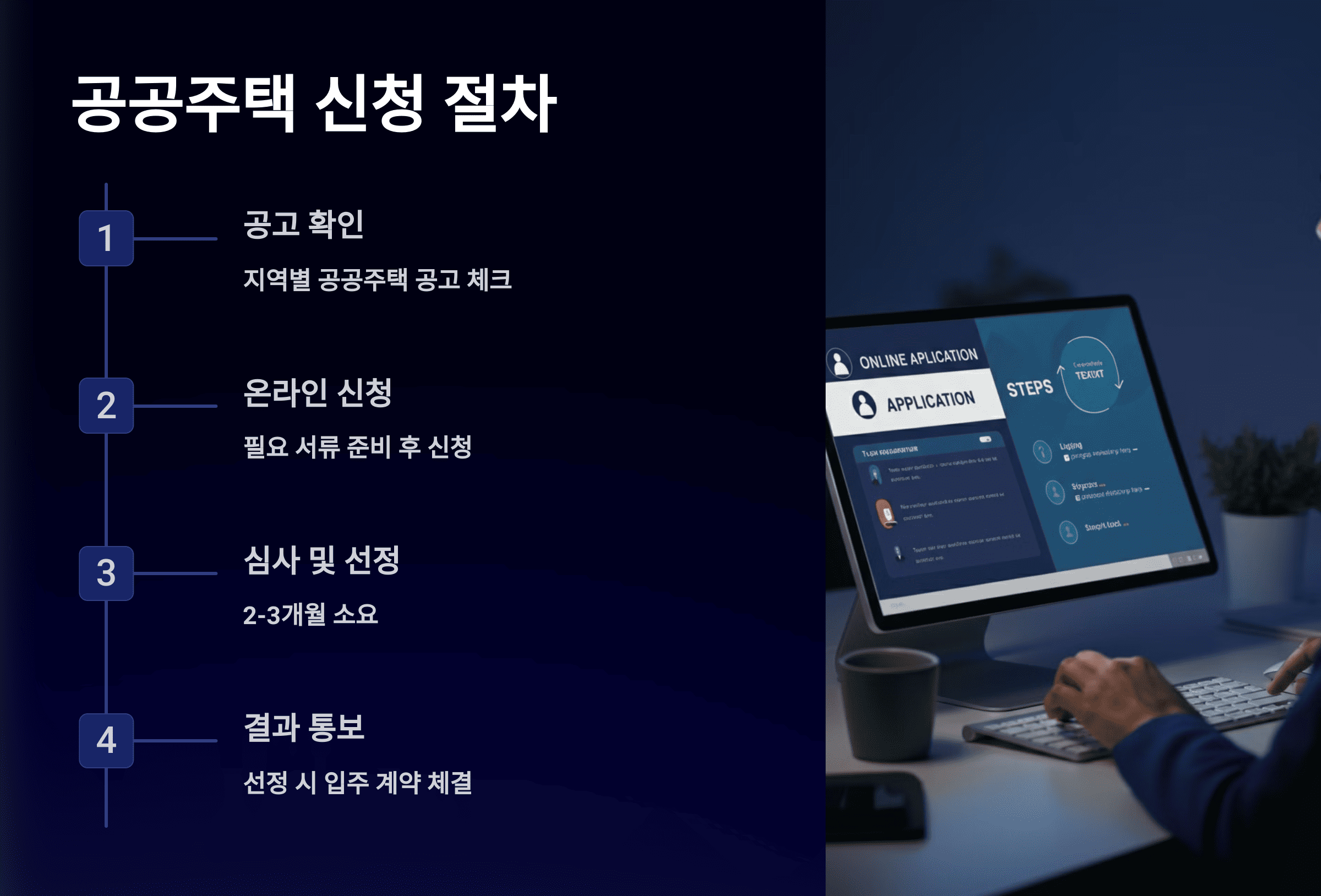공공주택 신청 절차는 기본적으로 온라인 신청, 서류 제출, 심사 및 선정, 결과 통보의 단계로 진행됩니다.