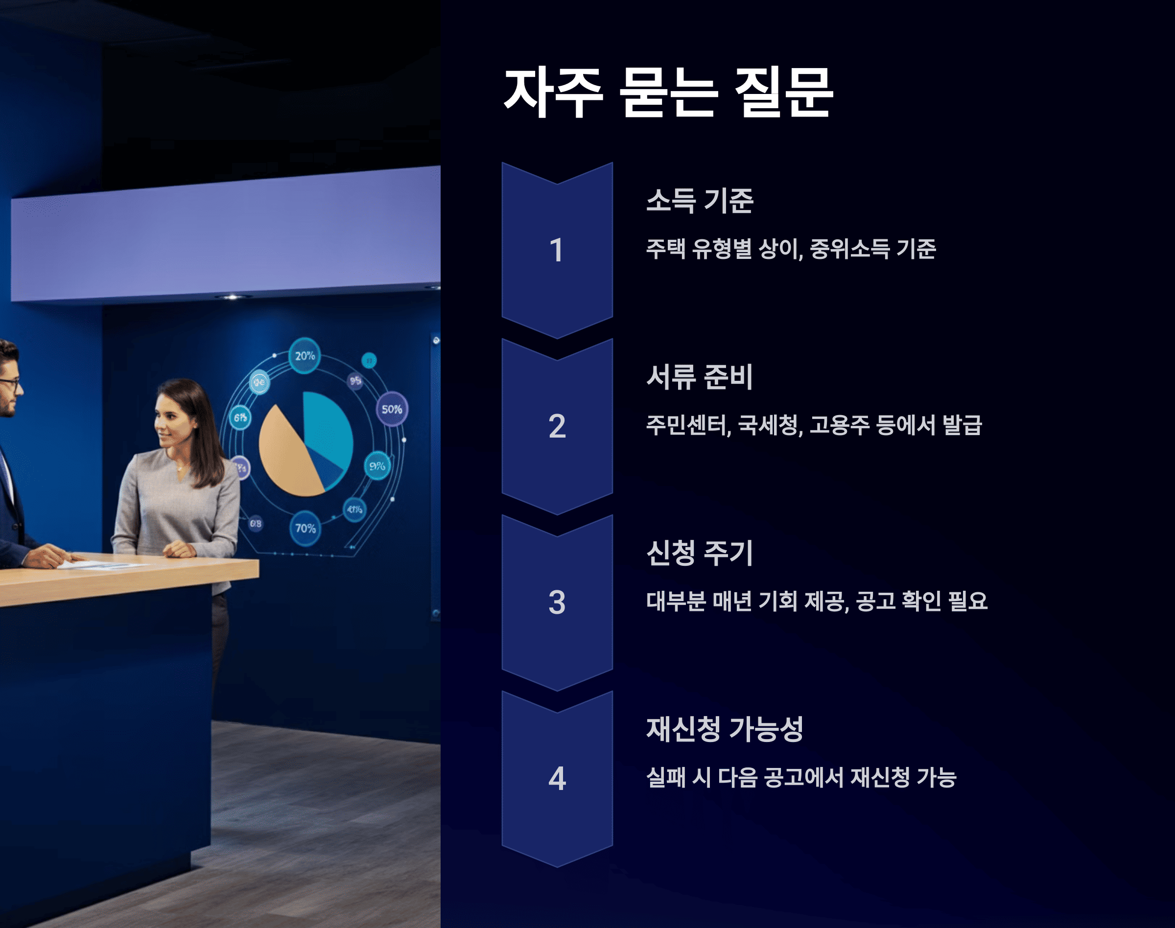 만약 신청에 실패하더라도 재신청이 가능하므로, 주기적으로 공고를 확인하며 다음 기회를 준비해야 합니다. 이는 공공주택 지원의 문턱을 낮추고 더 많은 사람들이 안정적인 주거를 확보할 수 있도록 돕기 위한 제도적 장치입니다.