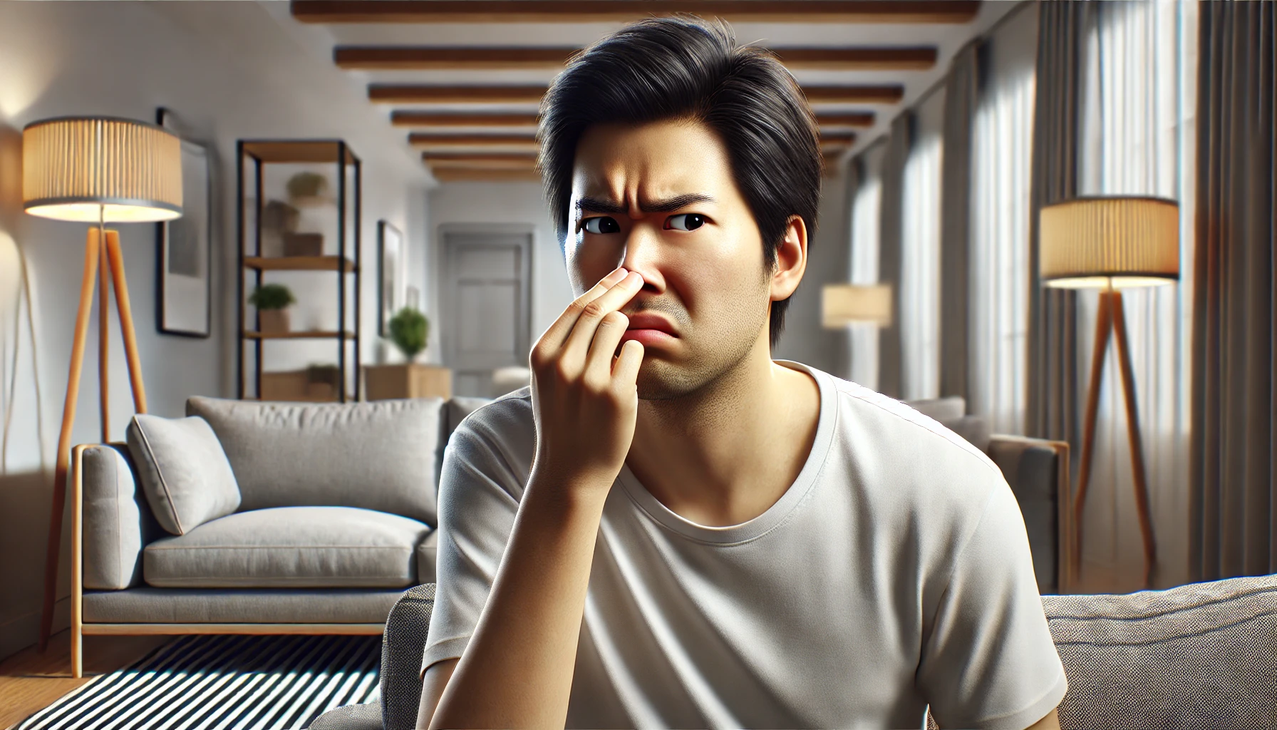 지독한 방귀로 불편해하는 남성