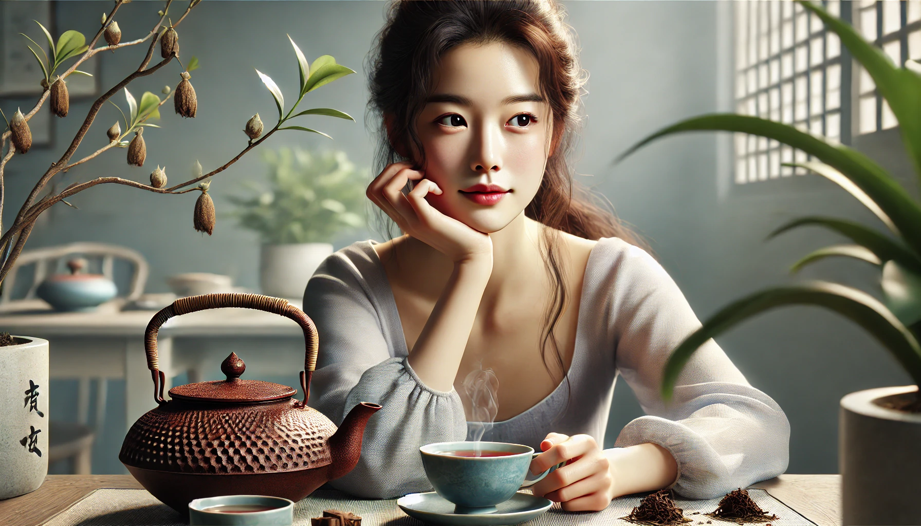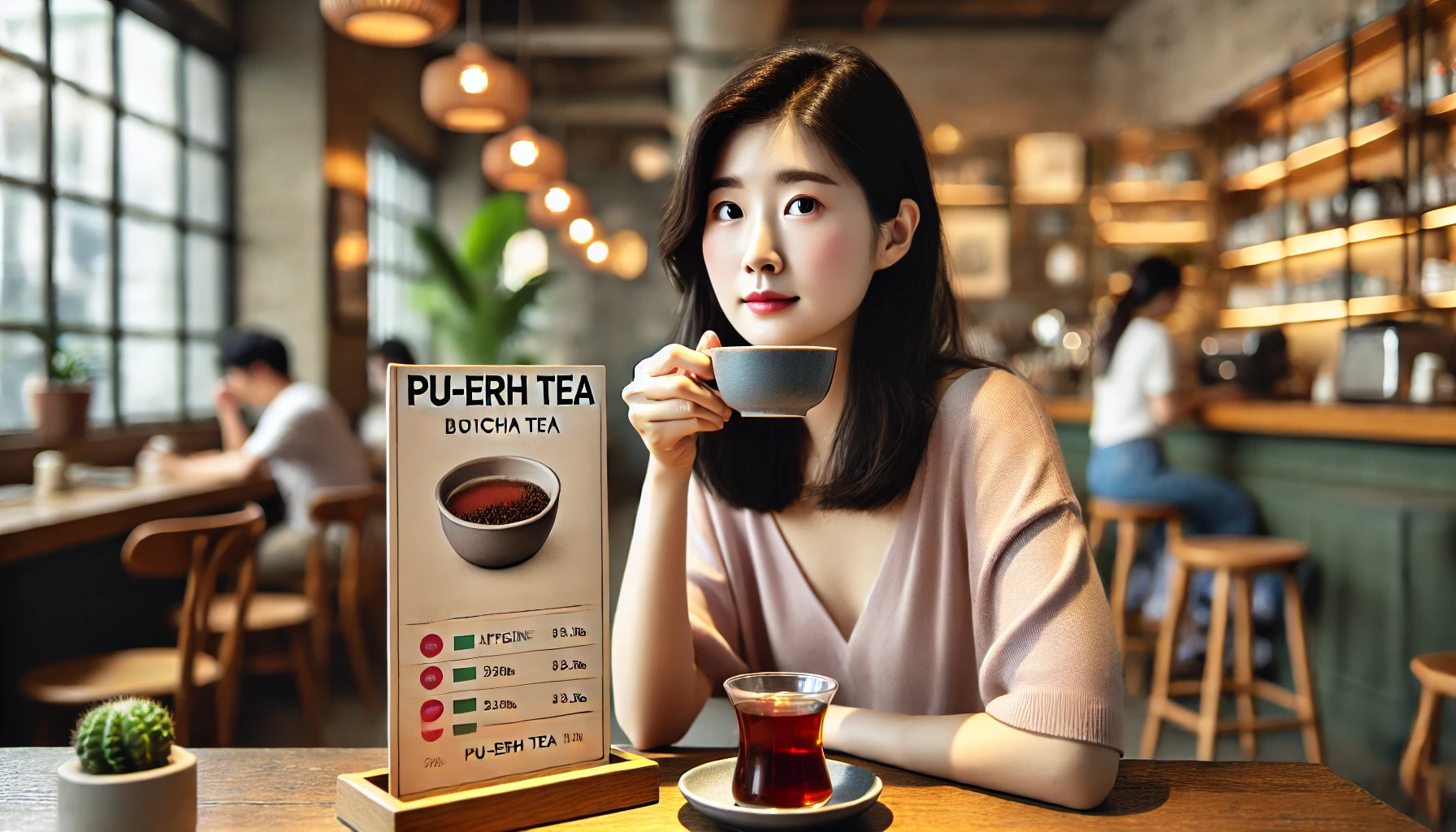 보이차-카페인-아시아-여성-카페-차-마시는-모습