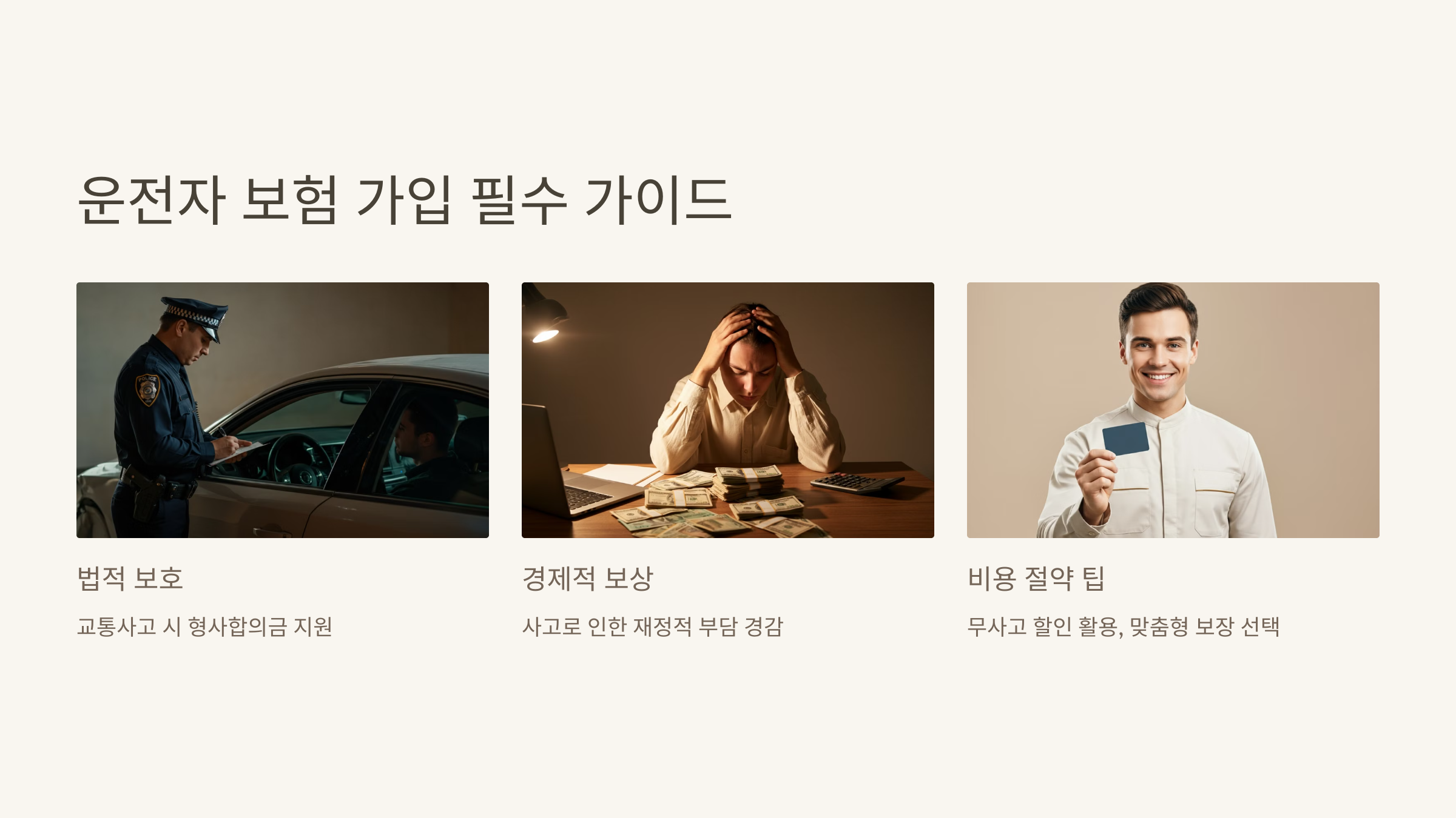 14. 운전자 보험 가입 필수 가이드: 사고 시 법적 보호와 비용 절약
