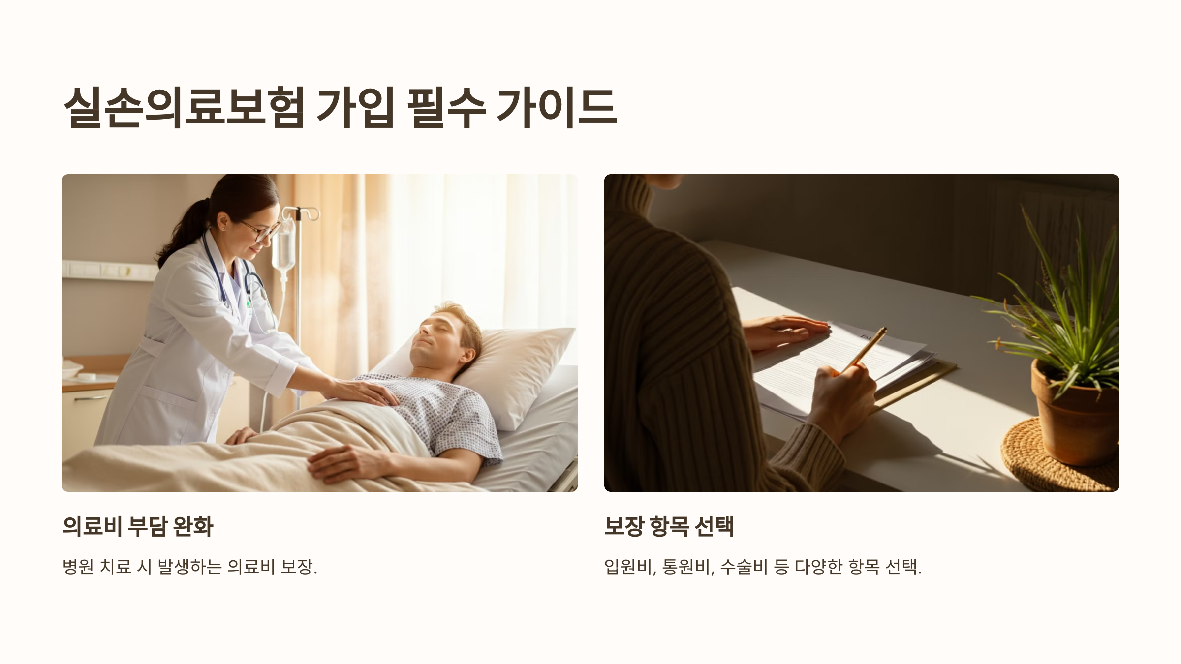 실손의료보험은 병원 치료 시 발생하는 다양한 의료비를 보장하는 중요한 보험입니다. 본인의 상황에 맞는 보장 항목을 선택하고, 의료비를 줄일 수 있는 혜택을 잘 활용하는 것이 필요합니다.
