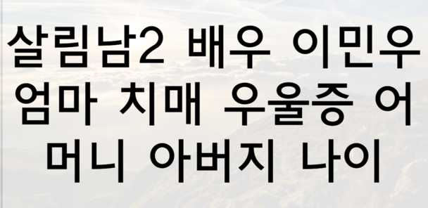 살림남2 배우 이민우 엄마 치매 우울증 어머니 아버지 나이 에 대한 글을 올립니다. 가수 이민우의 가족이 치매 진단을 받은 소식이 방송을 통해 전해지며 많은 이들에게 안타까움과 감동을 주고 있습니다.