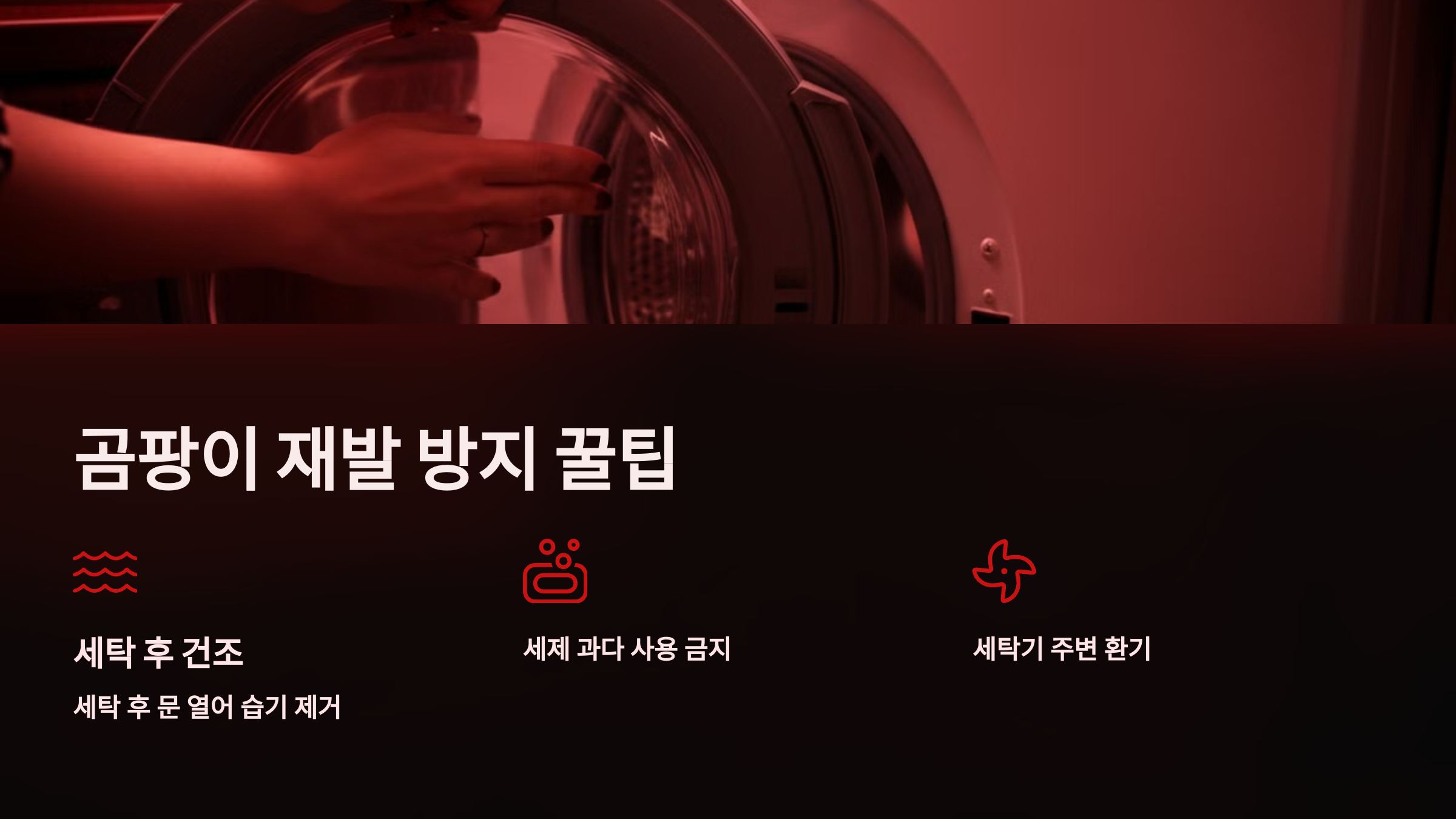 이런 곰팡이는 위생적인 문제를 일으킬 뿐만 아니라, 빨래 냄새의 원인이 되기도 하죠.