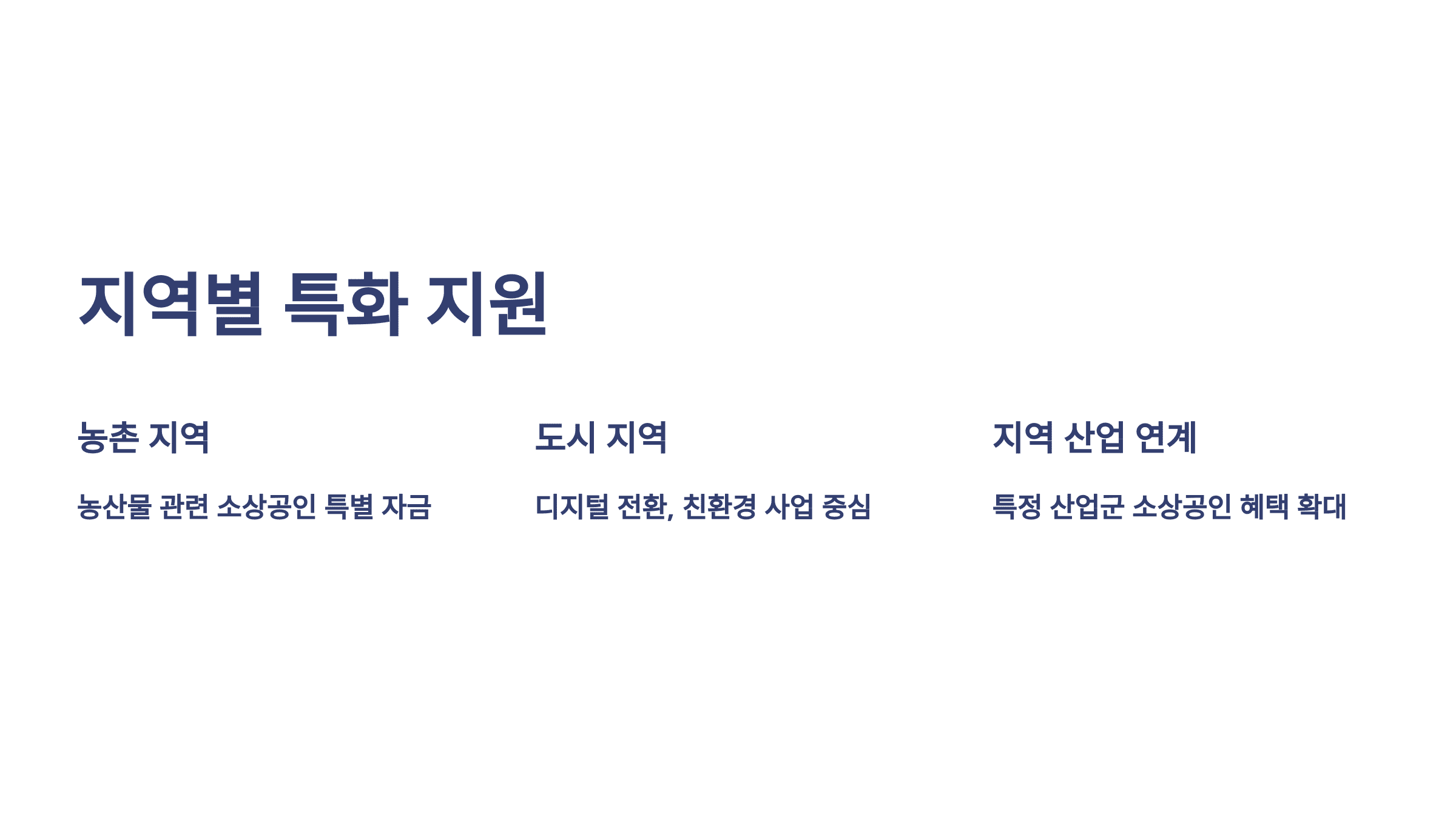지역 특성과 산업 구조를 반영한 맞춤형 지원이 제공되어 소상공인의 경쟁력 강화와 지역 경제 활성화를 목표로 하고 있습니다.