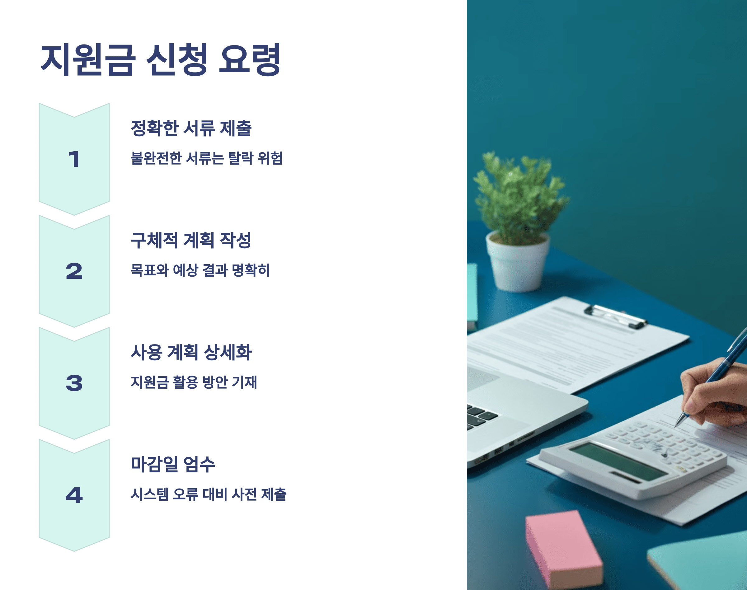 지원금을 어떻게 활용할 것인지에 대한 구체적인 계획을 수립하고 이를 서류로 제출하는 것이 중요합니다.