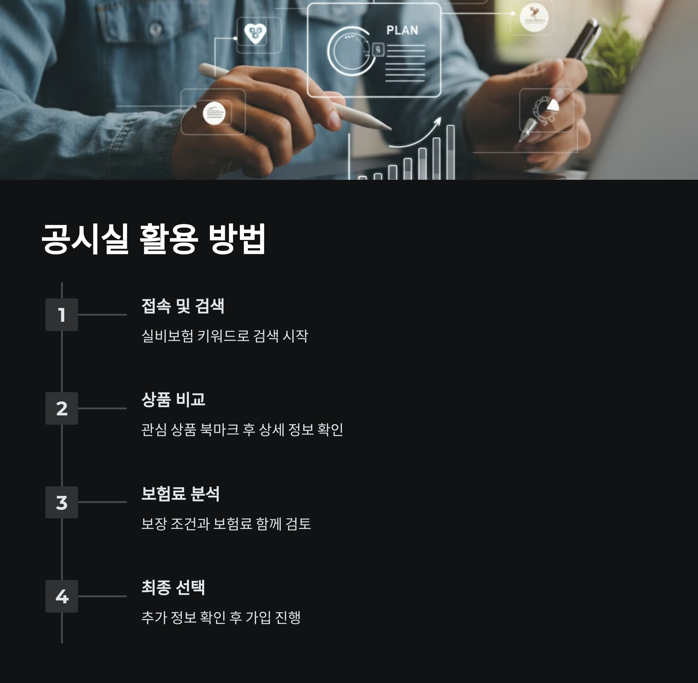 공시실을 이용하면 보험료와 보장 내용을 손쉽게 비교할 수 있어, 현명한 선택을 도와줍니다.