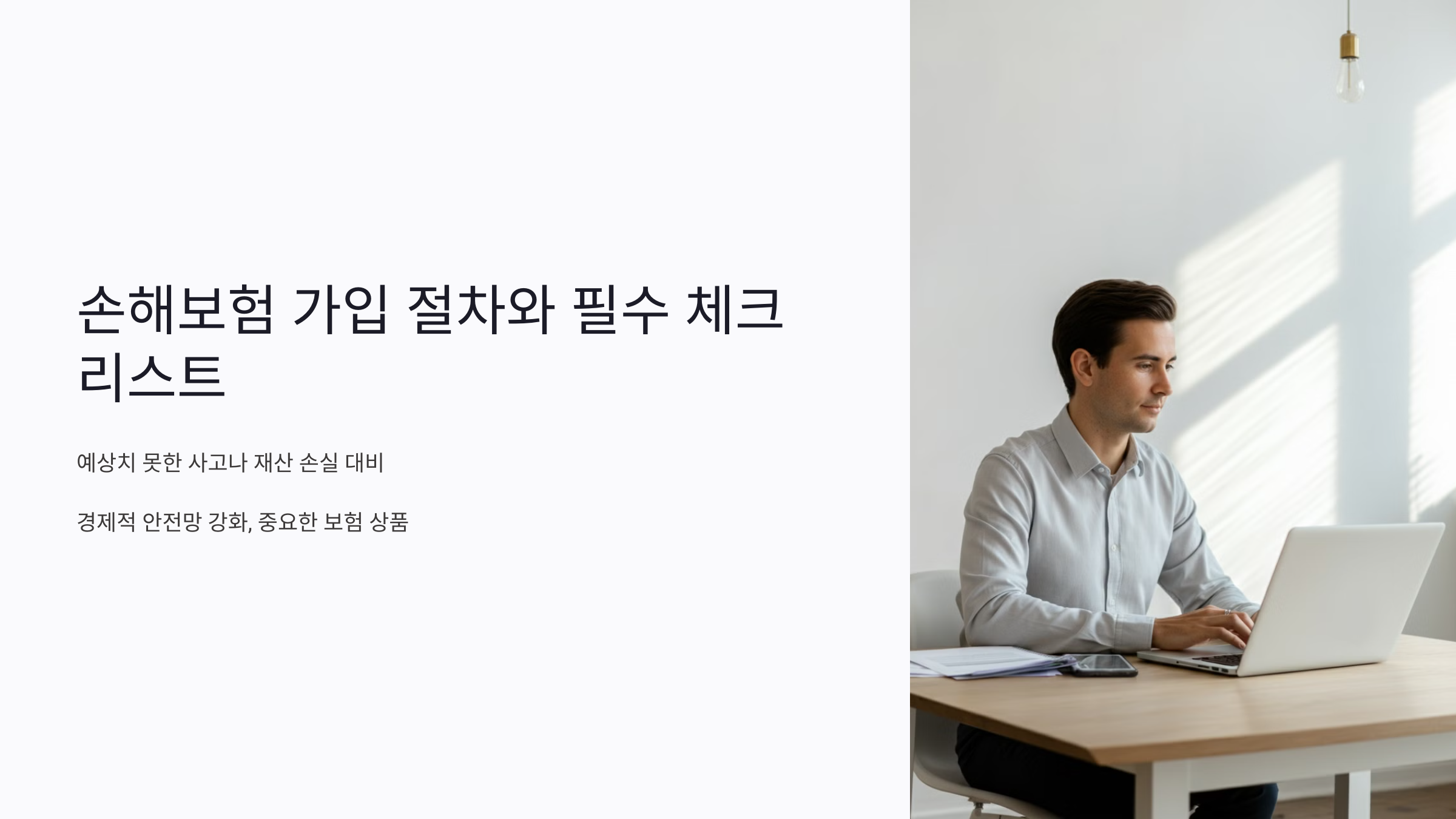 이 가이드에서는 손해보험 가입을 고려하는 분들이 꼭 알아야 할 절차와 필수 체크리스트를 단계별로 상세히 안내해드리겠습니다.