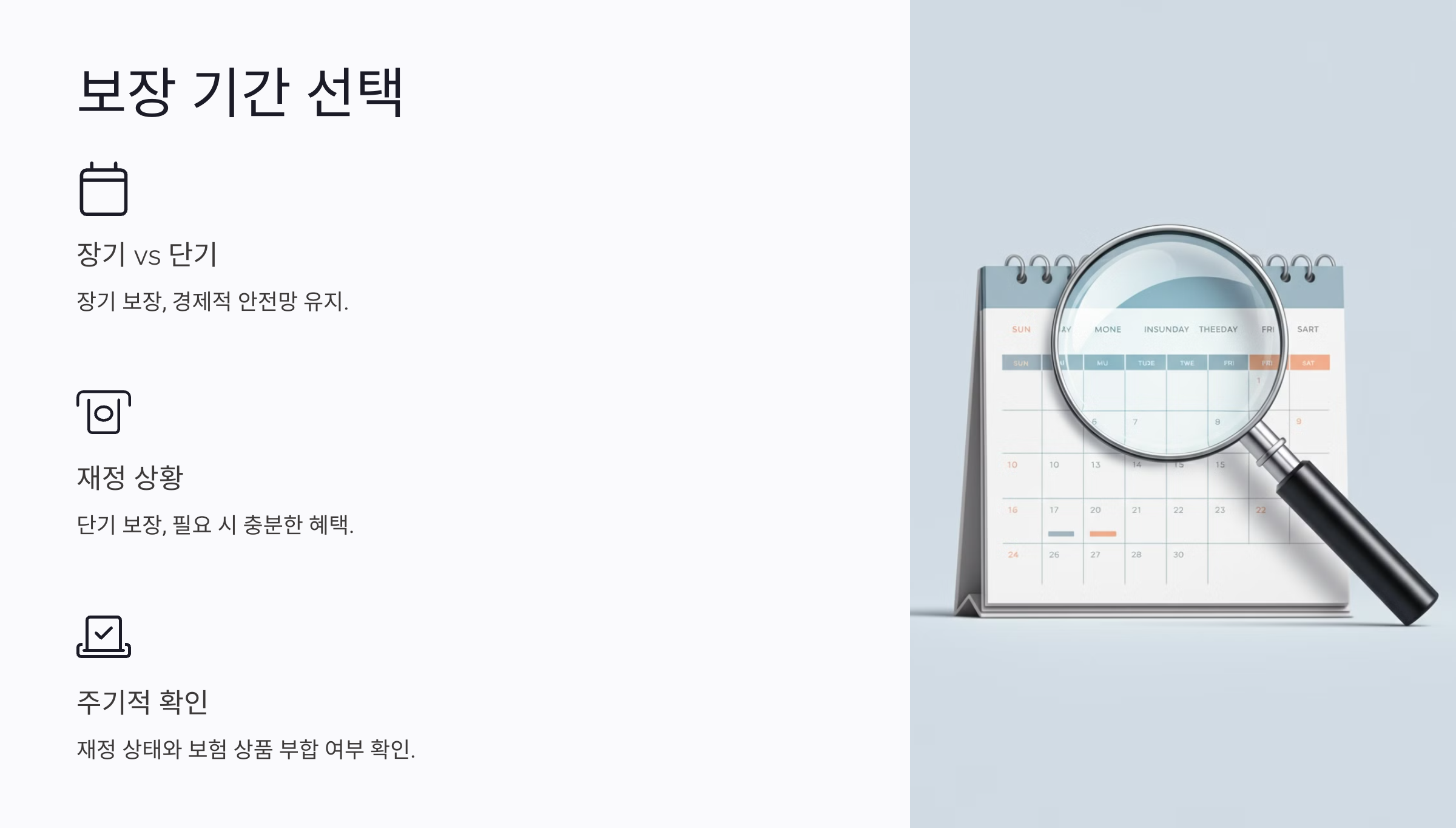 예를 들어, 장기적으로 경제적 안전망을 유지하고자 한다면 보장 기간을 길게 설정하는 것이 유리할 수 있습니다.