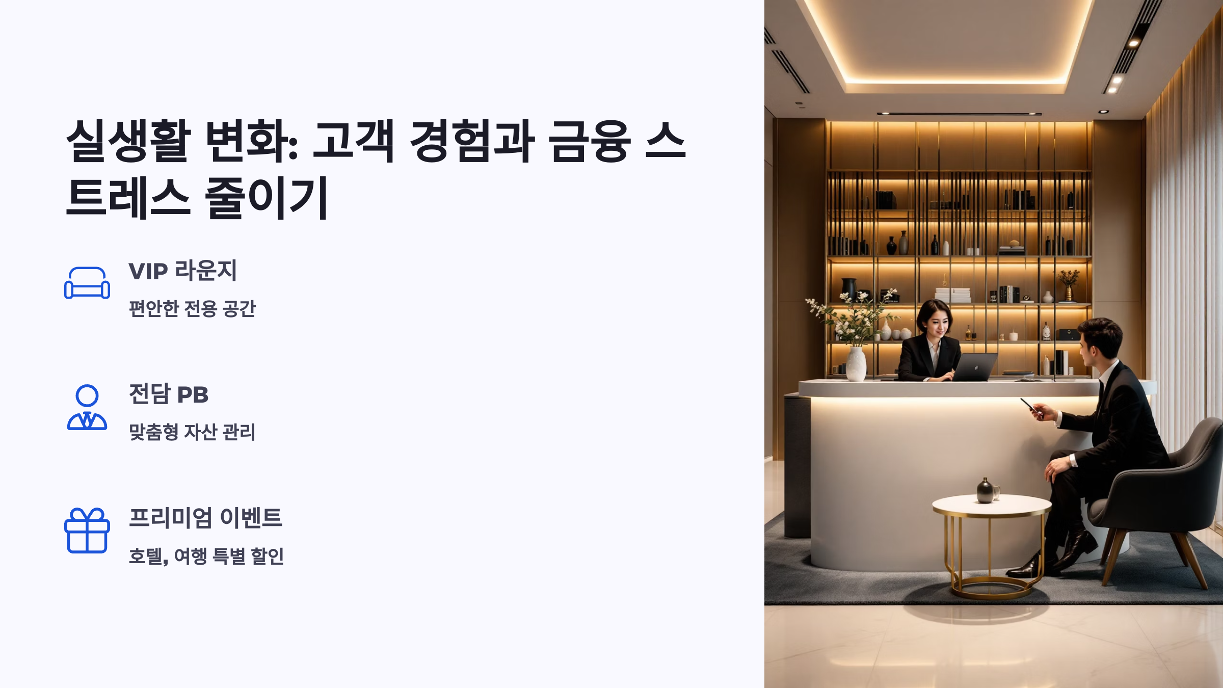신한은행은 VIP 고객에게 별도 상담 채널을 제공해줘서, 작은 금융 고민도 빠르게 해결됐어요. 하나은행은 앱 푸시로 내 실적 변화와 혜택 유지 조건을 알려줘서 스트레스가 덜했어요.