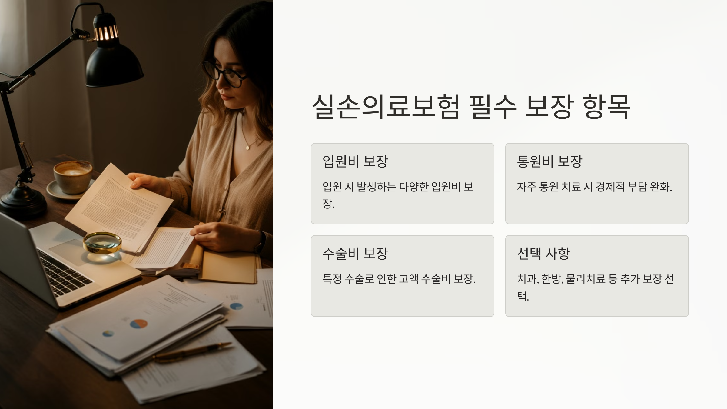 실손의료보험 필수 보장 항목과 추가 선택 옵션