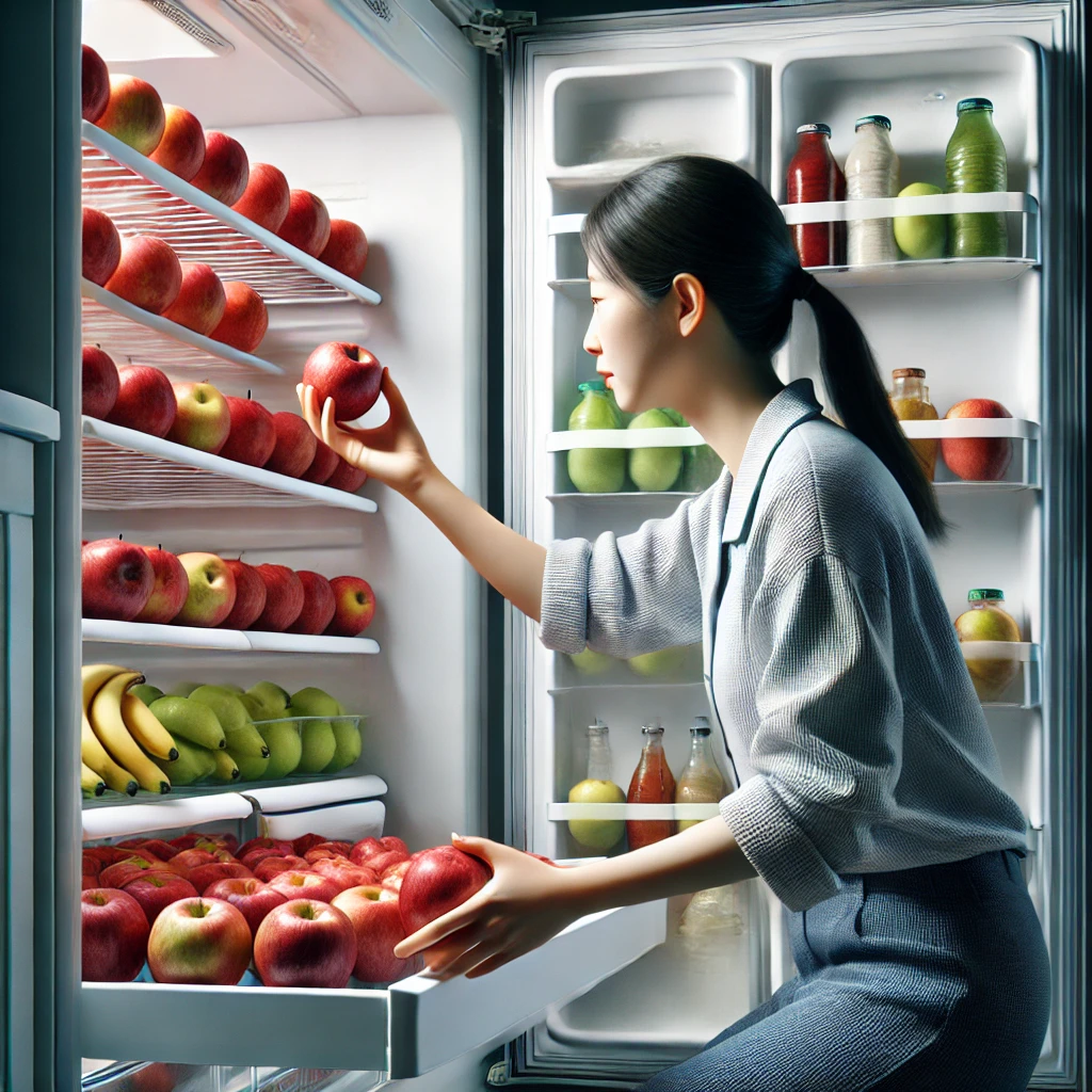 플라스틱 백에 넣어 냉장고의 야채 칸에 보관하면, 수분이 증발하는 것을 방지할 수 있습니다. 냉장 보관 시 사과의 신선함이 오래 유지되며, 1~2주 동안도 변질되지 않습니다. 냉장고 안의 온도는 0~4도 사이를 유지하는 것이 좋습니다.