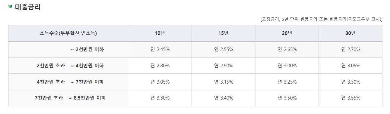 일반적으로 금리는 연 2%에서 5% 사이로 형성되며, 고정금리변동금리 중 선택할 수 있습니다. 고정금리는 대출 기간 동안 금리가 변하지 않아 안정적이지만, 변동금리는 시장 금리에 따라 변동될 수 있어 초기 금리가 낮을 수 있습니다.