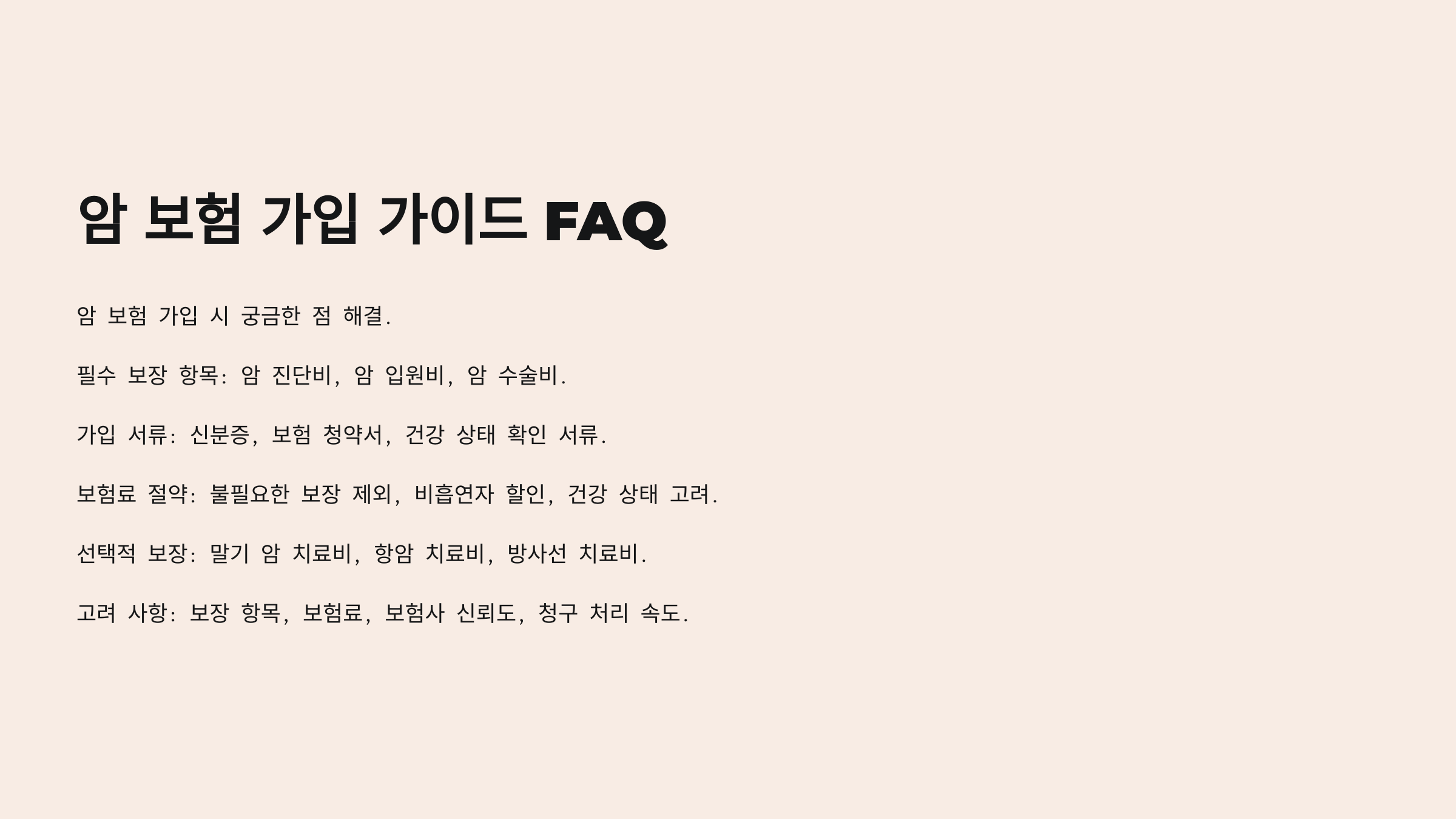FAQ 5: 암 보험 가입 시 고려해야 할 사항은 무엇인가요?