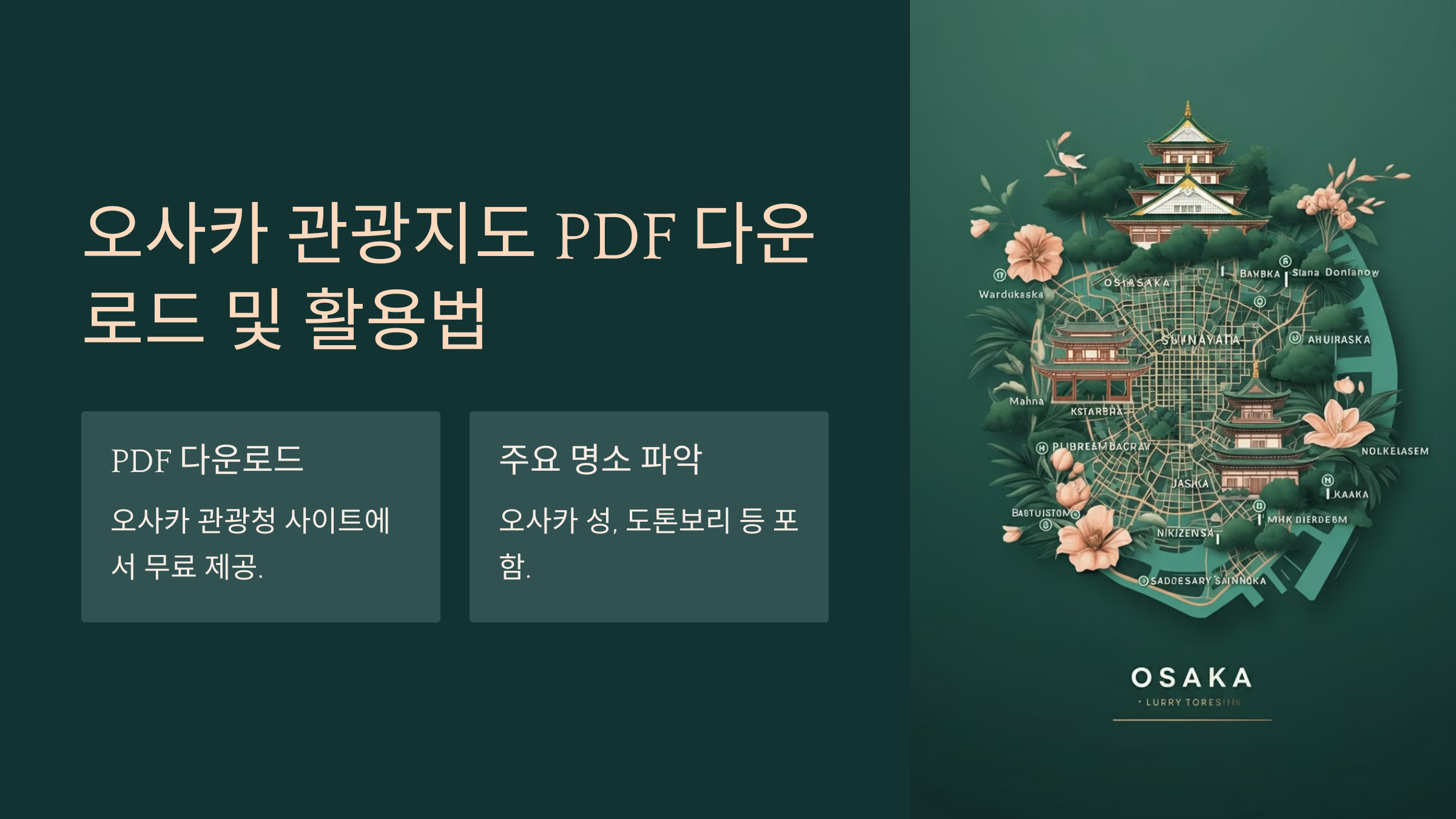 오사카 관광청이나 관광 포털에서 제공하는 PDF 형식의 관광지도를 다운로드하면 편리합니다. 이 지도는 주요 관광지와 교통 정보, 추천 코스 등이 표시되어 있으며, 스마트폰이나 태블릿에 저장하여 오프라인에서도 사용할 수 있습니다.