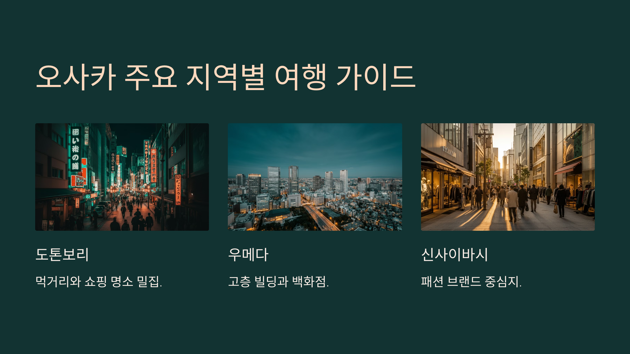 Q: 오사카 지역별 주요 관광 포인트를 확인하려면 어떻게 하나요?