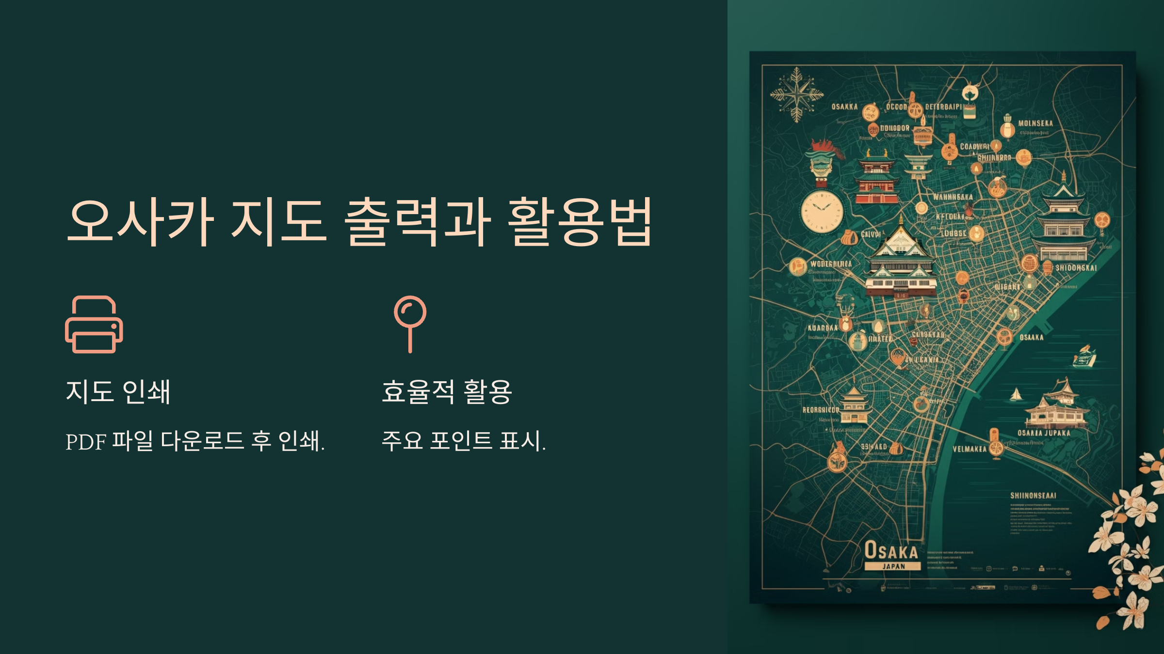 • 지도 인쇄 방법: 구글 지도 또는 오사카 관광청 PDF 파일을 다운로드하여 인쇄하거나, 필요한 구역만 확대하여 인쇄할 수도 있습니다.