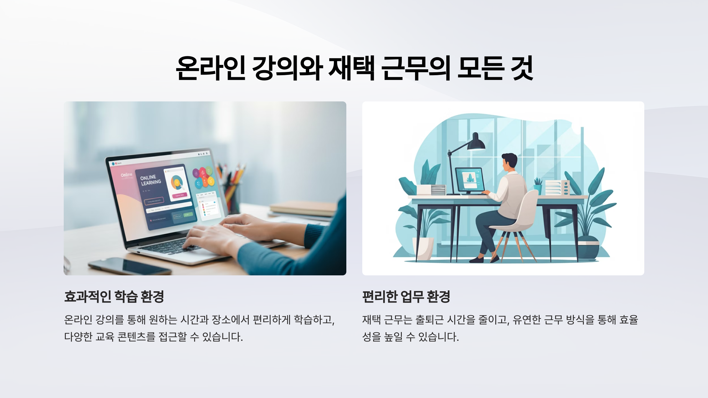 온라인 강의와 재택 근무는 서로 보완적인 관계에 있습니다.