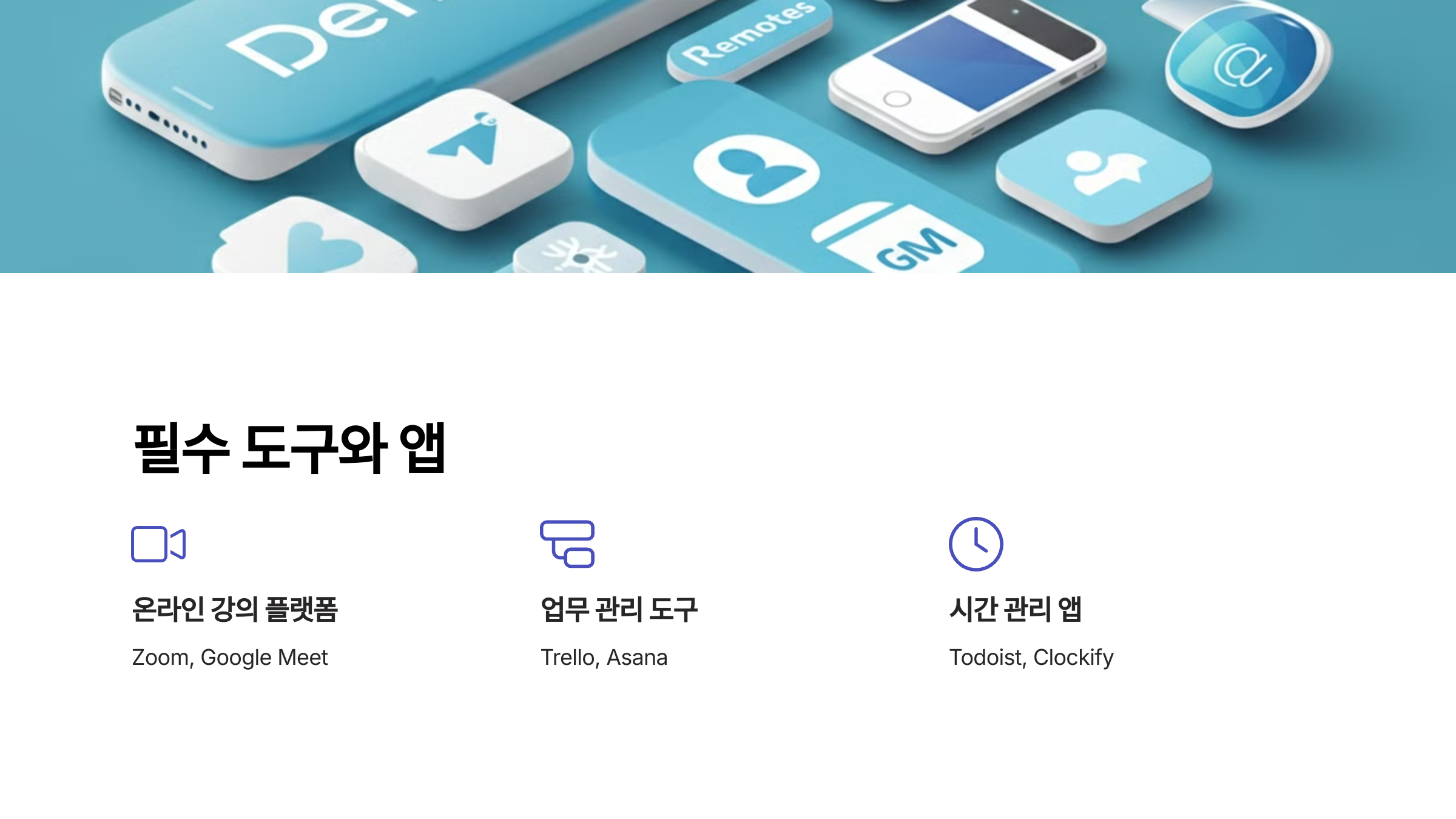 • Zoom, Google Meet 같은 플랫폼과 Trello, Asana와 같은 관리 도구를 추천합니다. 이들은 원활한 소통과 효율적인 업무 진행을 가능하게 합니다.