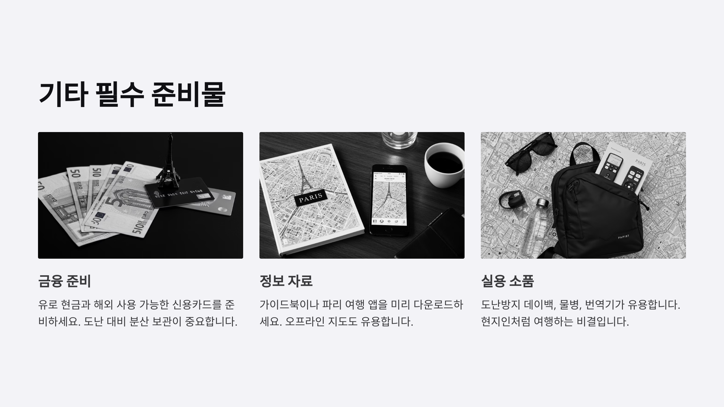 Q1. 파리 여행을 위해 여권 외에 준비할 게 있나요?