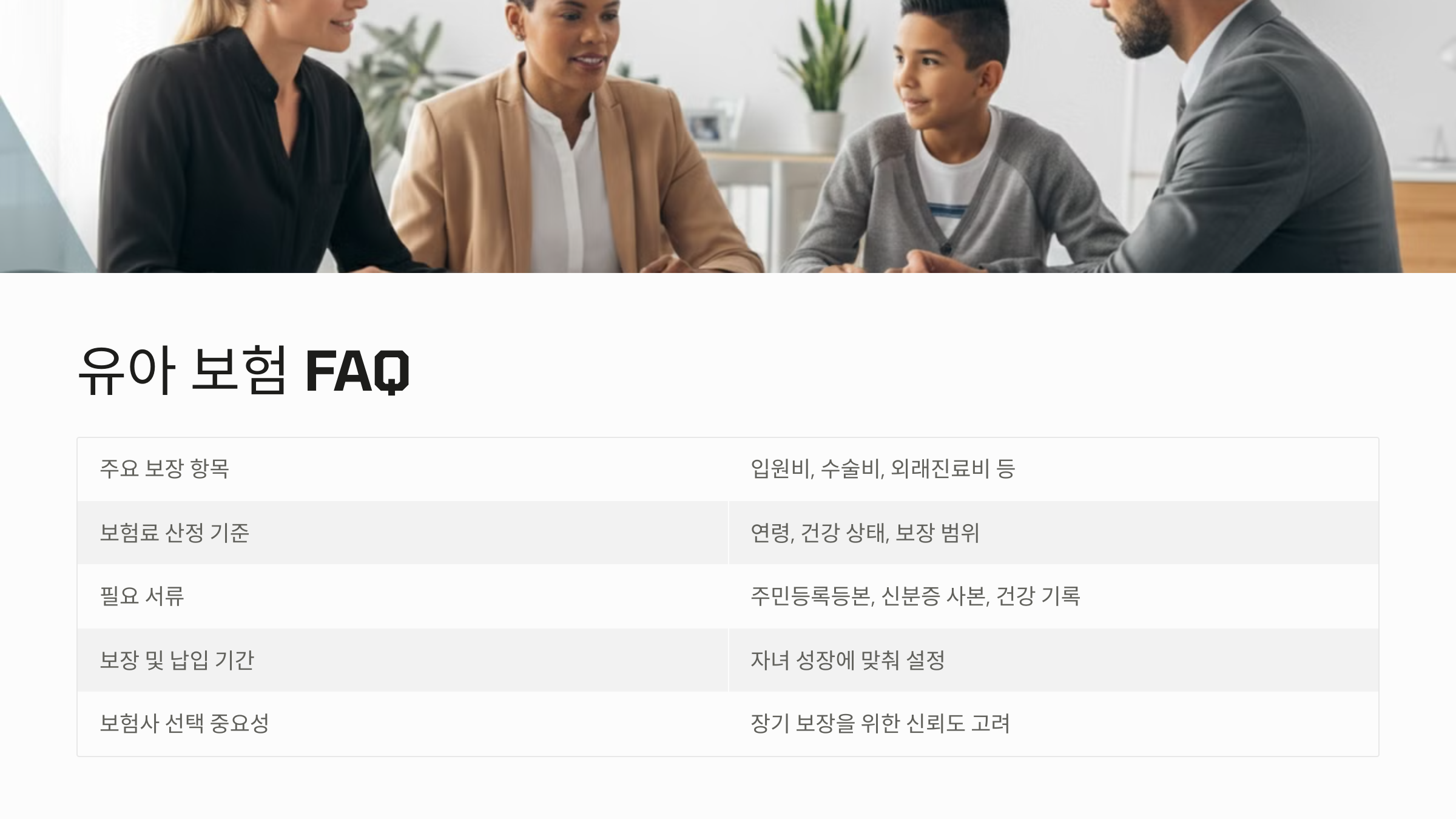 FAQ 1: 유아 보험에서 꼭 포함해야 할 주요 보장 항목은 무엇인가요?