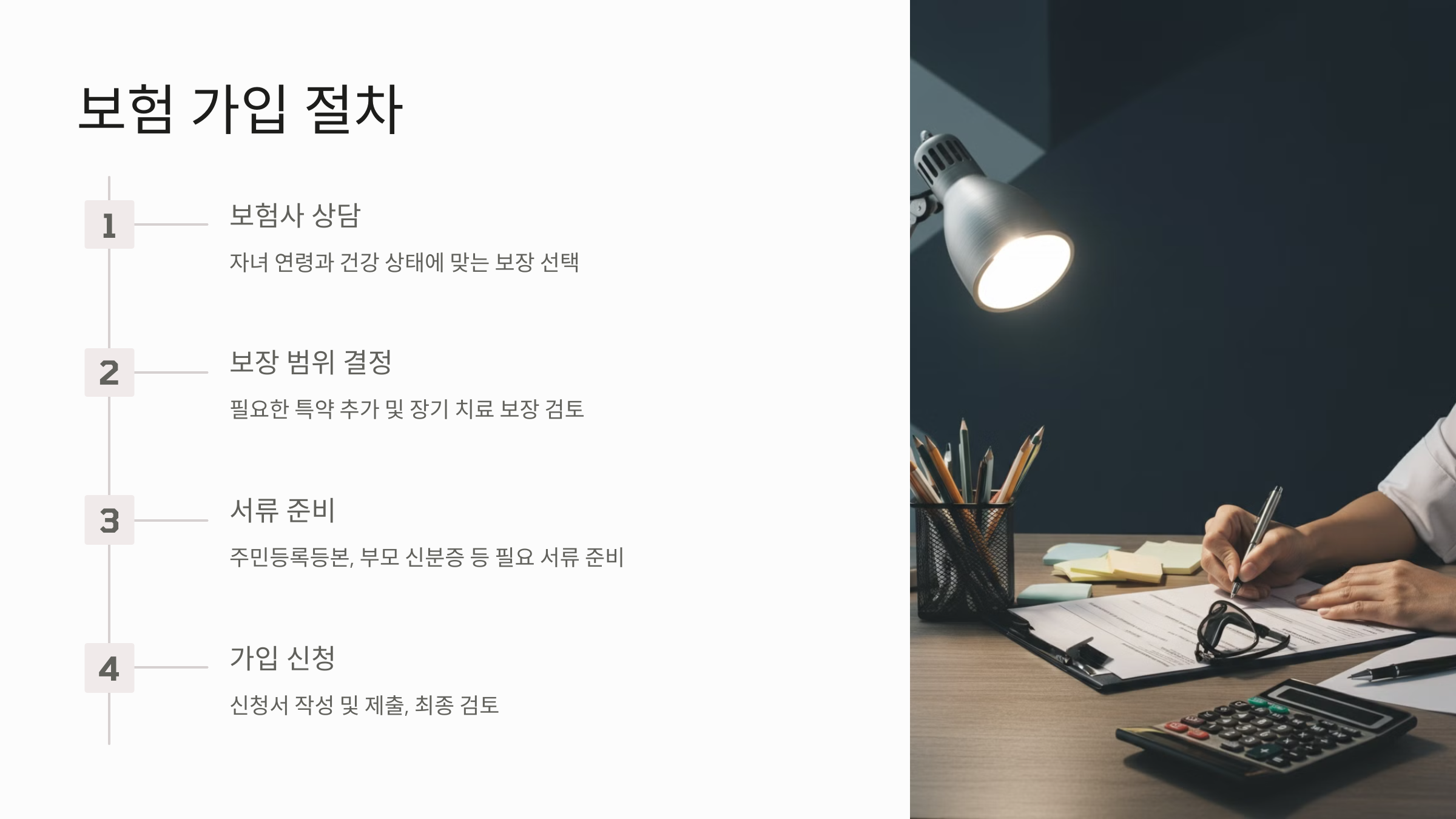 이를 통해 자녀의 건강을 위한 최적의 보험을 선택하고 가입 과정에서 유의해야 할 필수 체크포인트를 놓치지 않도록 도와드립니다.
