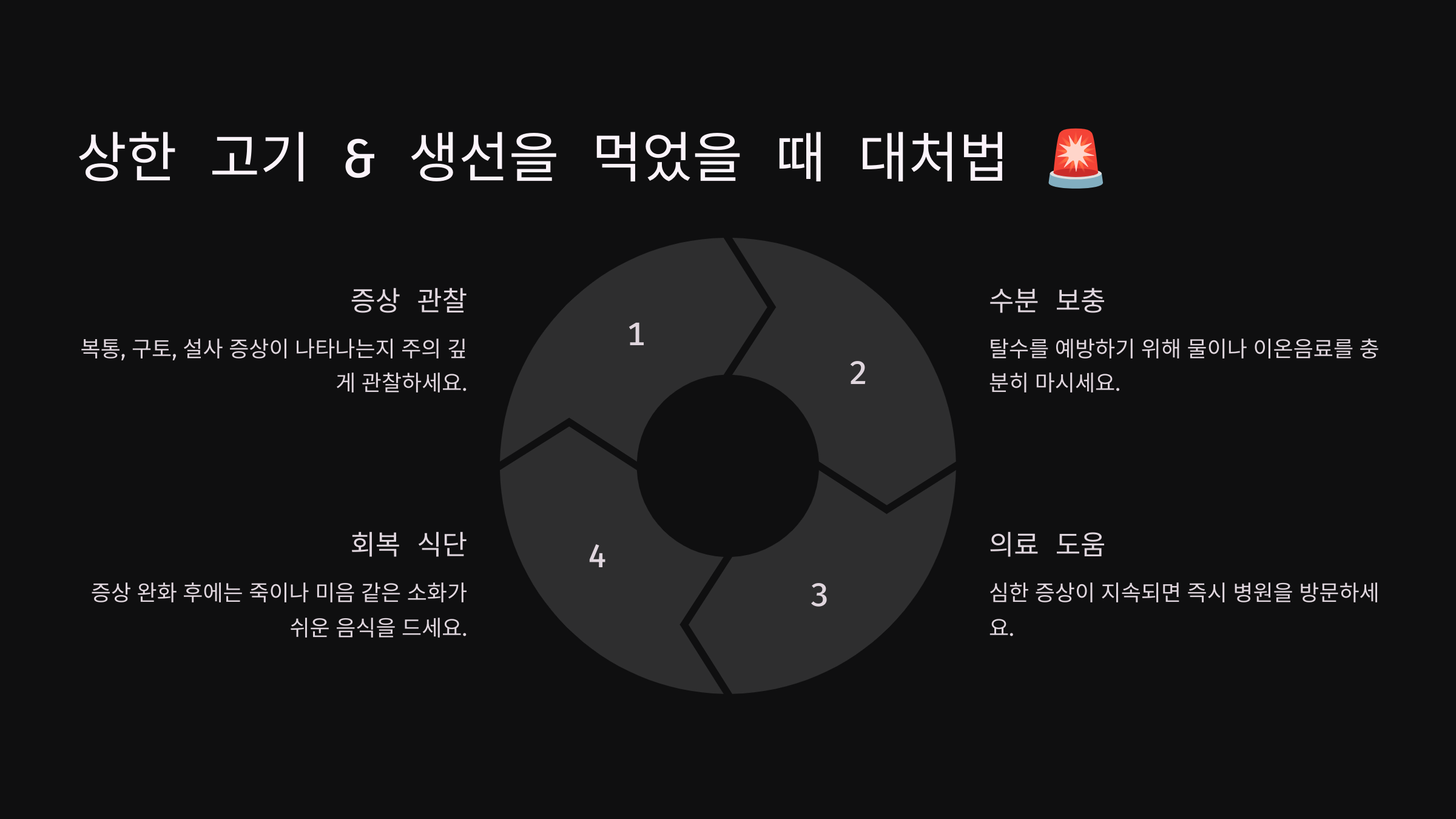 육류와 생선을 안전하게 조리하는 것이 중요하지만, 만약 상한 음식을 먹었다면 대처법을 꼭 확인하세요!