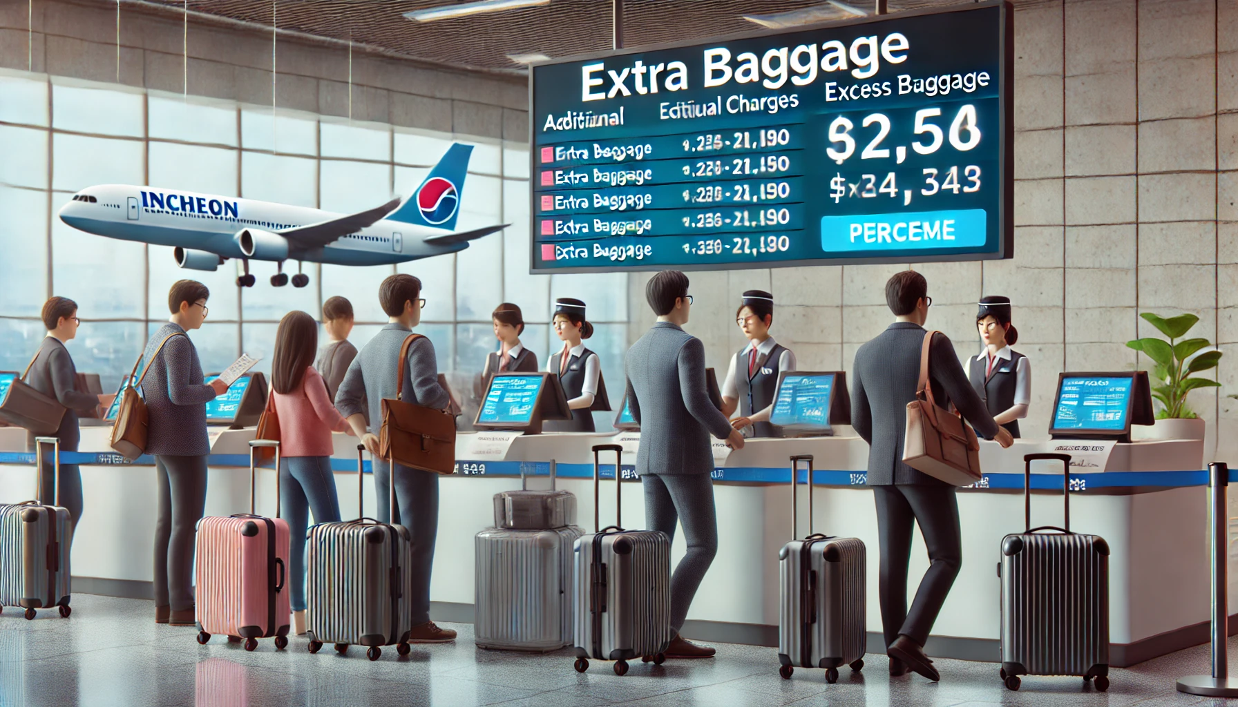 인천공항에서 발생할 수 있는 추가 비용의 대부분은 수하물 초과와 관련이 있습니다.