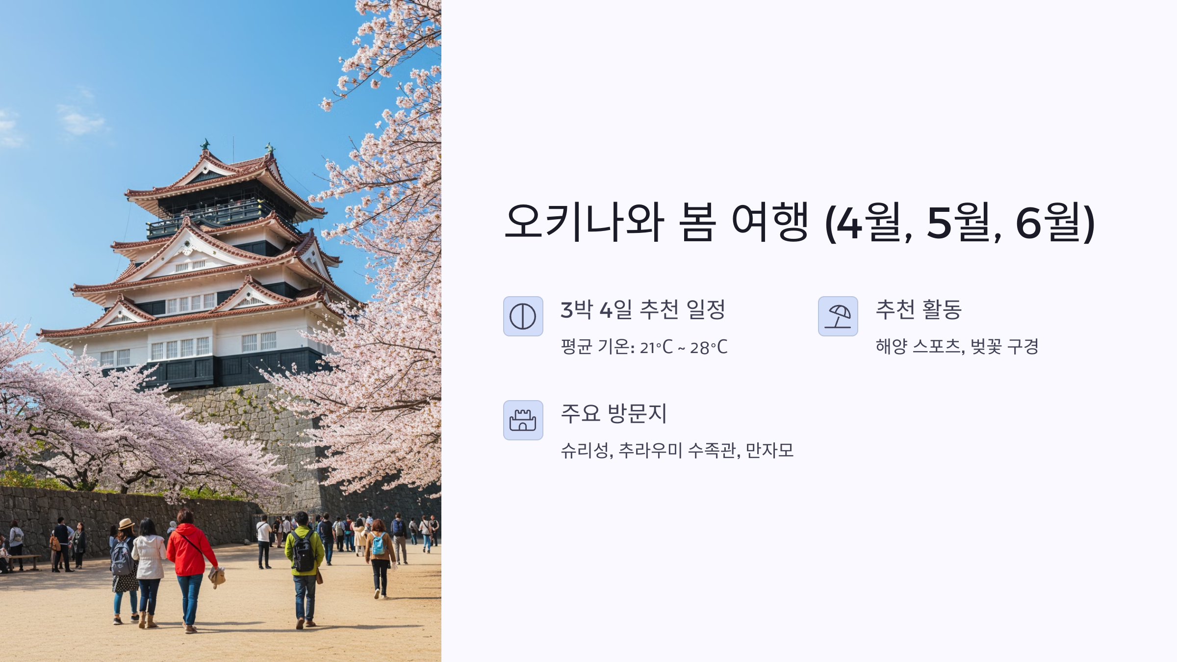 오키나와 봄 여행은 따뜻한 날씨와 함께 자연을 만끽할 수 있는 최고의 시기입니다.