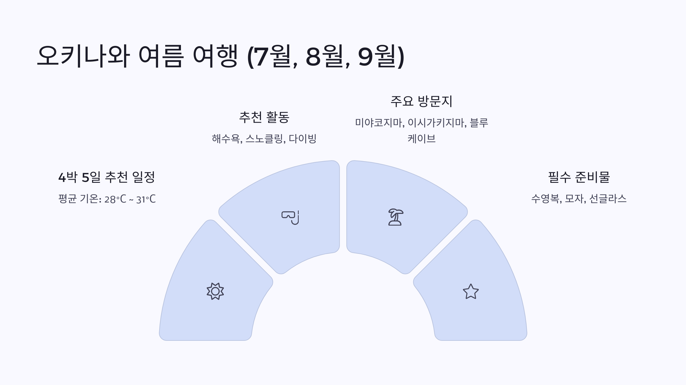 오키나와 여름 여행은 본격적인 해양 액티비티 시즌으로, 에메랄드빛 바다와 다양한 축제를 즐기기에 이상적인 시기입니다.