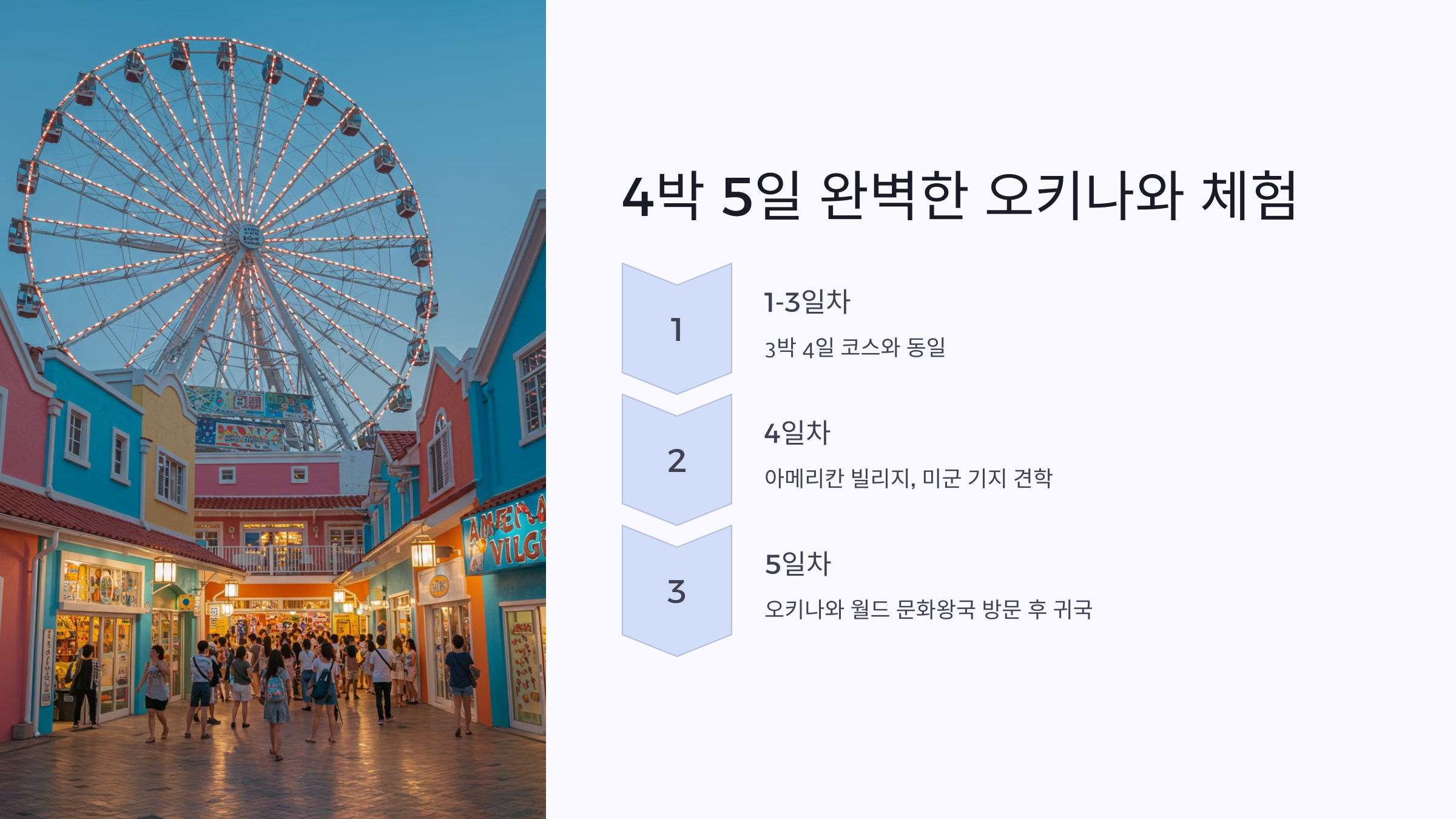 오키나와 여행 4박 5일 일정은 관광지와 액티비티를 모두 즐기고 싶은 여행자들에게 적합한 코스입니다.