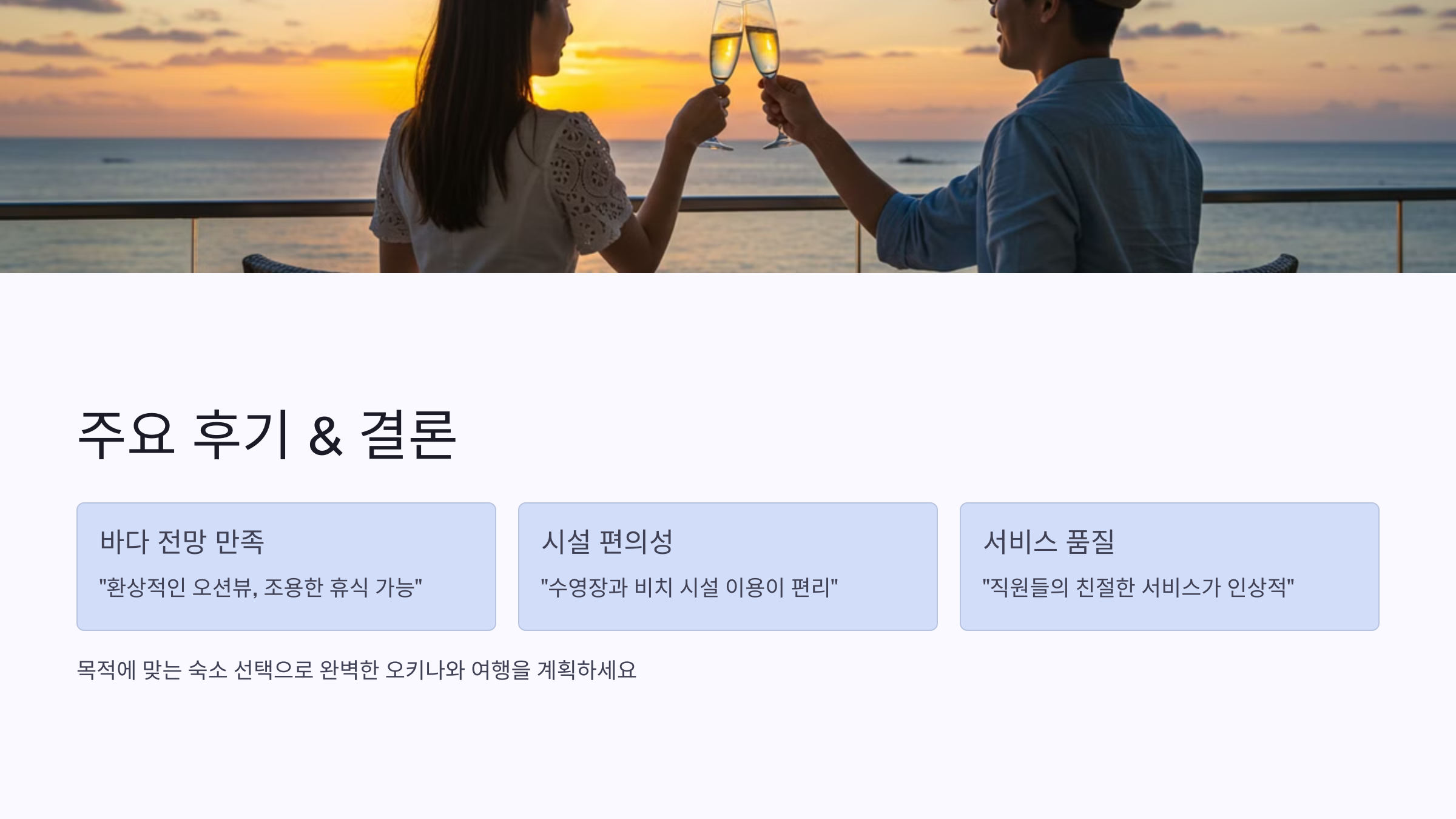 오키나와 여행의 만족도를 높이기 위해서는 숙소 선택이 매우 중요합니다.