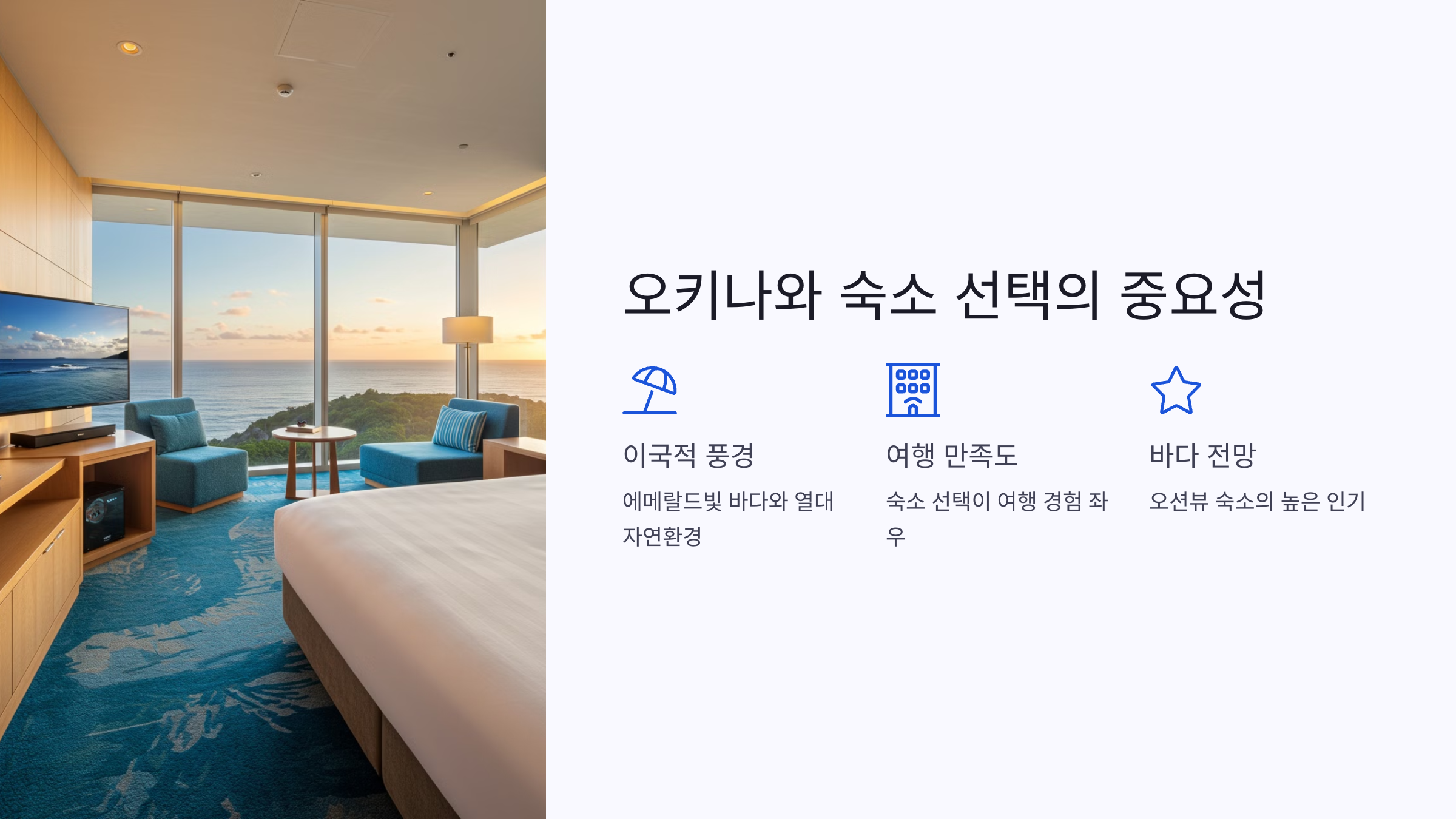 오키나와에서 숙소를 선택할 때 가장 중요한 요소는 바로 위치와 전망입니다.
