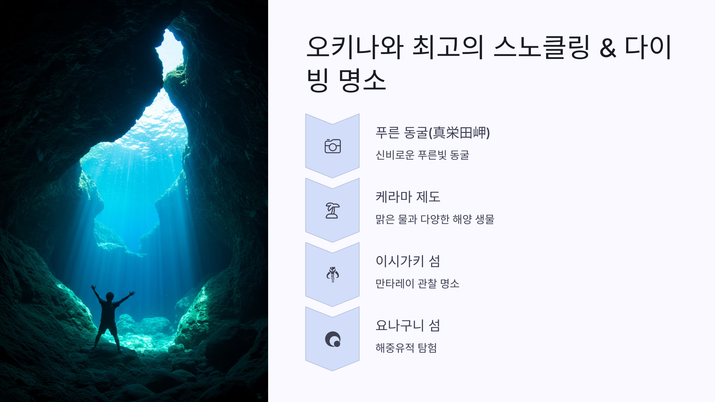 오키나와는 전 세계 다이버들이 꿈꾸는 여행지로, 아름다운 자연과 풍성한 해양 생태계를 제공합니다.
