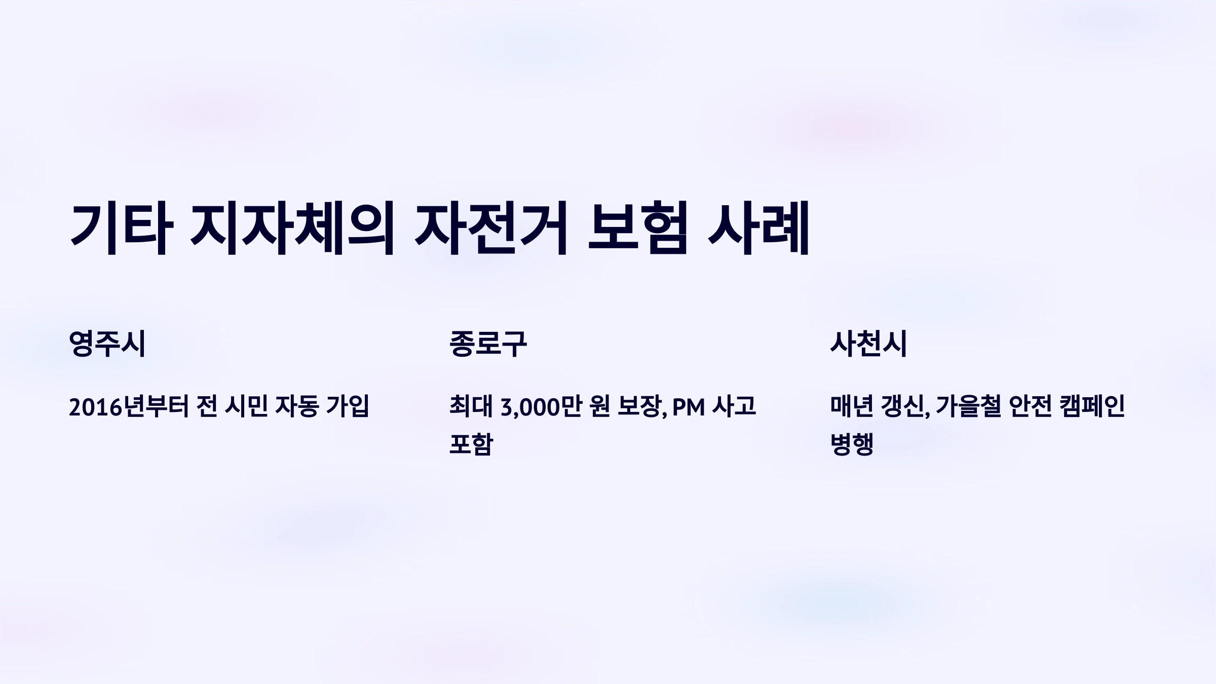 자전거 보험은 앞으로 더욱 많은 지자체에서 채택되고, 이용자 중심의 보장 체계로 발전할 가능성이 커요.