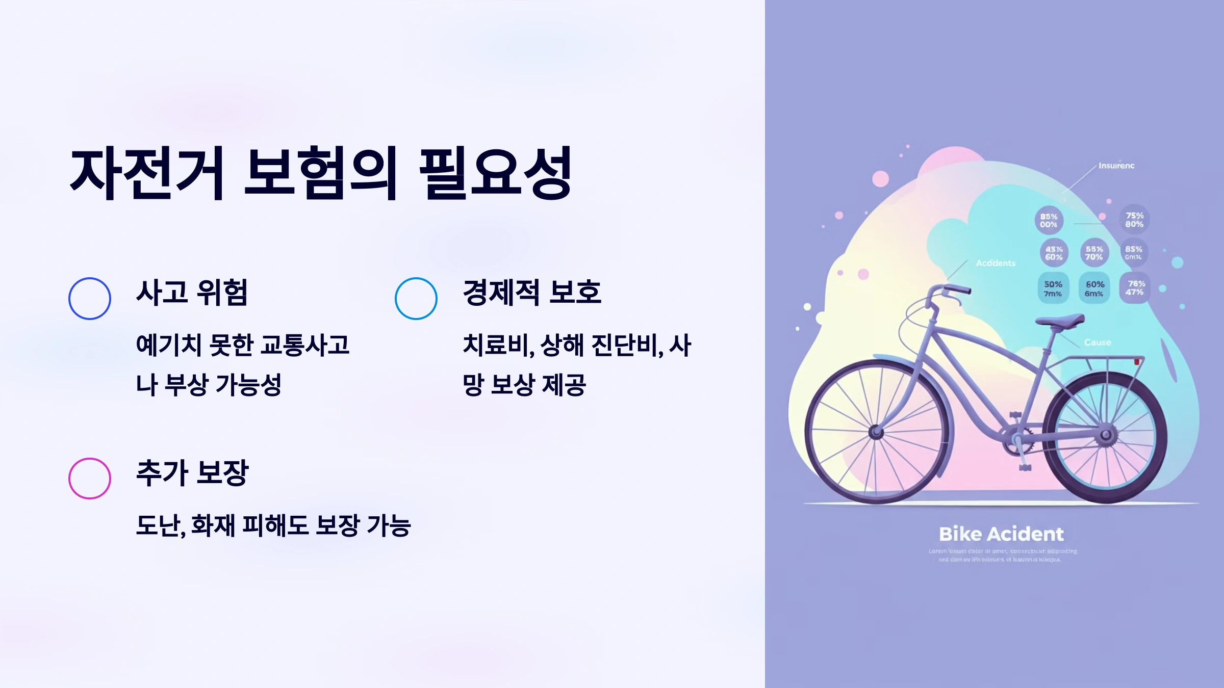자전거 보험은 자전거 이용 중 발생할 수 있는 사고에 대비해 꼭 필요한 안전장치예요.