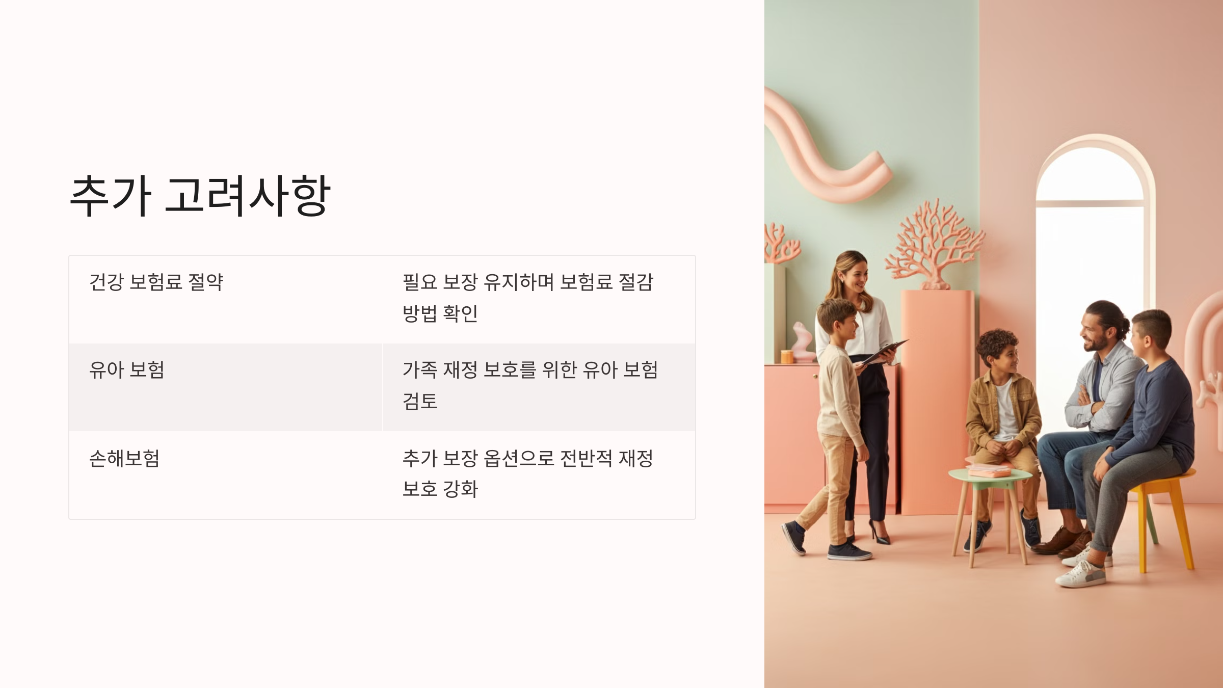 또한 가족의 재정적 안정을 강화하기 위해서는 📌 유아 보험 가입 안내 를 참고하여 전반적인 가족의 재정 보호를 보완할 수 있는 보험 상품을 선택해 보세요.